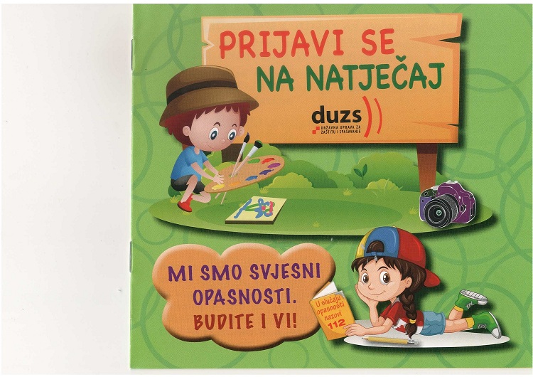 Državna uprava za zaštiti u spašavanje objavila je Natječaj za izradu likovnih, literarnih i foto radova djece i mladih predškolskog, osnovnoškolskog i srednjoškolskog uzrasta te djece i mladih s posebnim obrazovnim potrebama iz Republike Hrvatske za školsku 2018./2019. godinu, na temu katastrofa i snaga sustava civilne zaštite.
