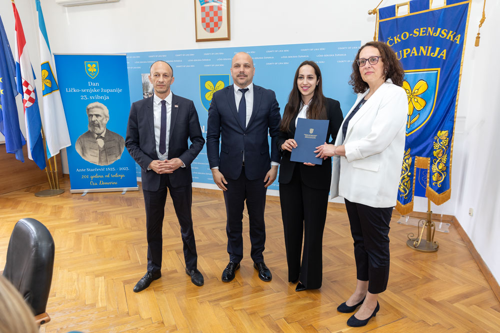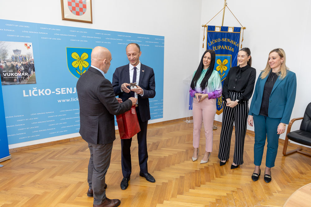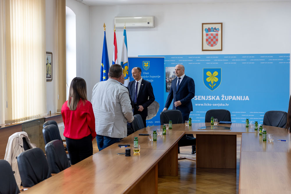 U Kabinetu župana Ličko-senjske županije Ernesta Petrya održana je svečanost koja je okupila gradonačelnike Senja i Novalje, Juricu Tomljanovića i Ivana Dabu, te načelnika Općine Brinje Zlatka Fumića, kao i ravnateljice Strukovne škole i Gimnazije Gospić, Barbaru Tomljenović Jurković i Anelu Serdar Pašalić.