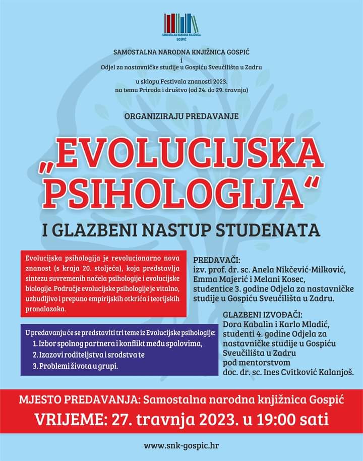 Home Gospić Festival znanosti – “Evolucijska psihologija” GospićKulturavijesti Festival znanosti – “Evolucijska psihologija” By Nikola Mraović - 27 travnja, 2023 0 Facebook Gs Press / Odjel za nastavničke studije u Gospiću RELATED ARTICLESMORE FROM AUTHOR Troskot traži očitovanje Grada Gospića o zaprimanju otpada Potpisani ugovori vrijedni 314.000 eura: gotovo 50 % više sredstava za operativne službe i turizam 36-godišnjak i 32-godišnjakinja iz Gospića mjesecima prodavali kokain i marihuanu 365 od izbijanja afere ilegalnog otpada u Gospiću Objavljena dokumentacija za sanaciju otpada koji je nepropisno odložen u Poznanovcu i Gospiću