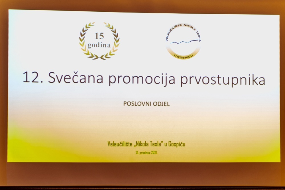 Danas je u Pučkom otvorenom učilištu uz pridržavanje epidemioloških mjera i obavezne Covid potvrde održana 12. svečana promocija stručnih prvostupnika Veleučilišta “Nikola Tesla” u Gospiću i obilježena 15. godišnjica osnutka Veleučilišta.