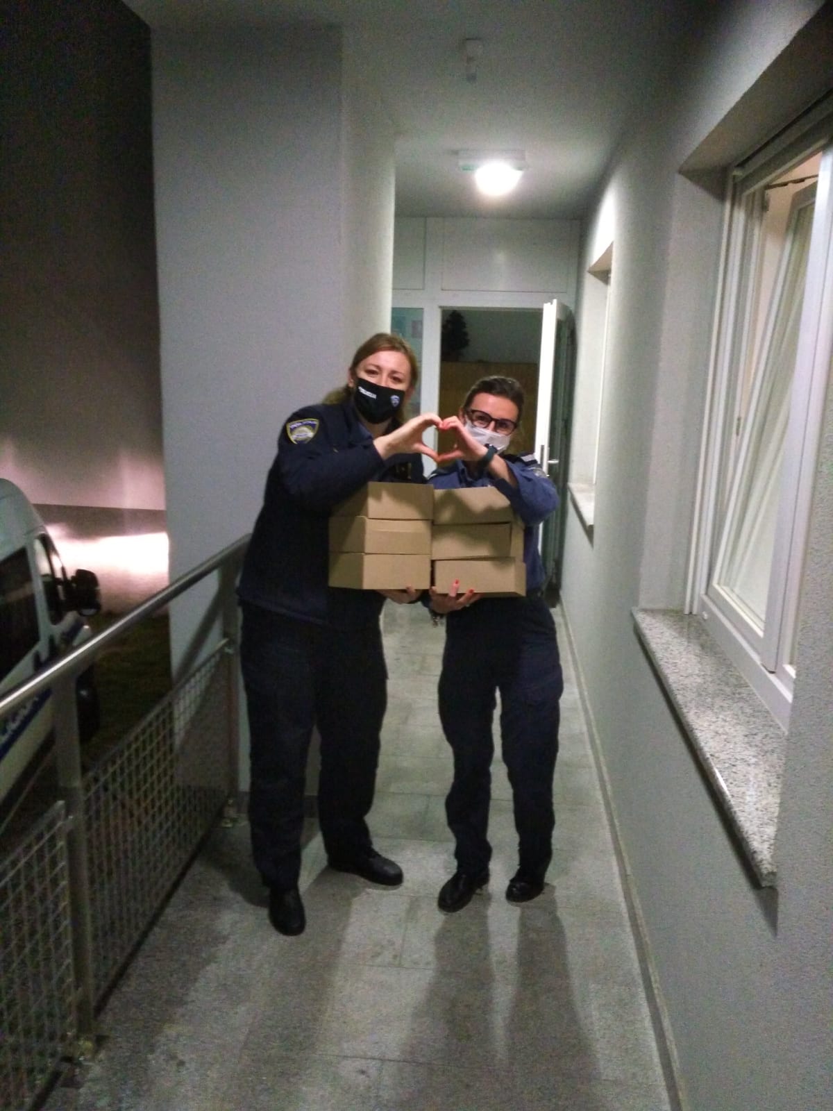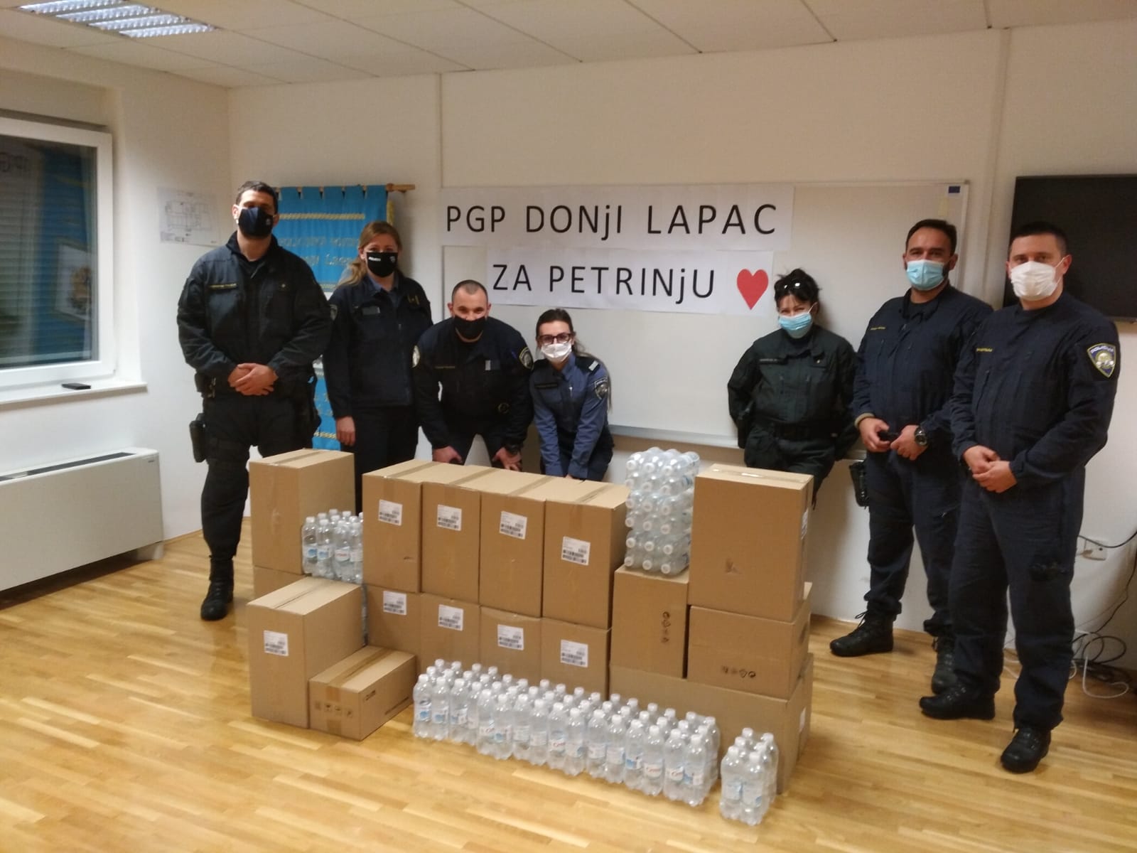 Lički interventni, granični i temeljni policajci i kolege iz Policijskih uprava šibensko-kninske, varaždinske i dubrovačko-neretvanske koji su na ispomoći u Lici na zaštiti državne granice odrekli se svojih pakiranih obroka za vrijeme 12 satne smjene i pun kombi poslali iz Donjeg Lapca u Petrinju.