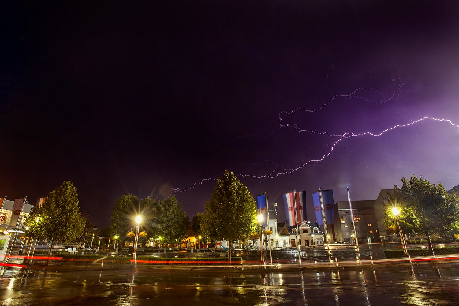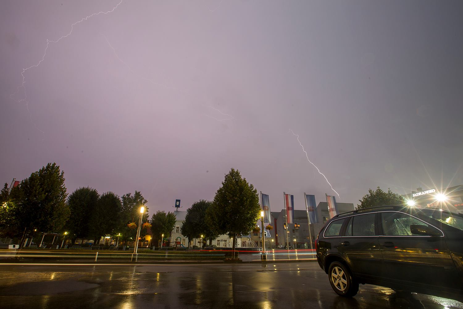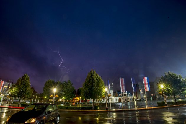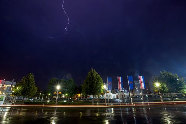 U vrlo kratkom vremenu pale su velike količine kiše, a temperature su se spustile i na 10 °C. Kamera portala uhvatila je munje koje su večeras parale nebo nad gradom.