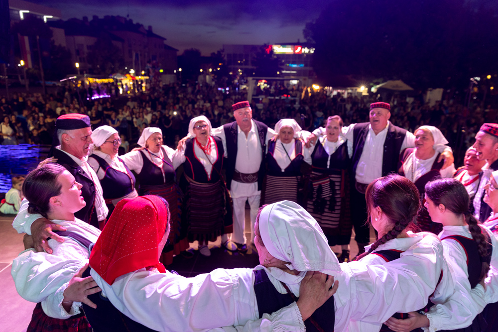 Na velikoj pozornici pod svjetlima reflektora izmjenjivali su se mali i veliki izvođači u narodnim nošnjama, a najemotivnije trenutke večeri priredili su najmlađi članovi kulturno-umjetničkih društava koji su svojim nastupom izmamili osmijehe i gromoglasne pljeskove publike. Posebnu atmosferu stvorili su tamburaši i pjevačke skupine, koje su tradicionalnim pjesmama prizvale duh prošlih vremena.