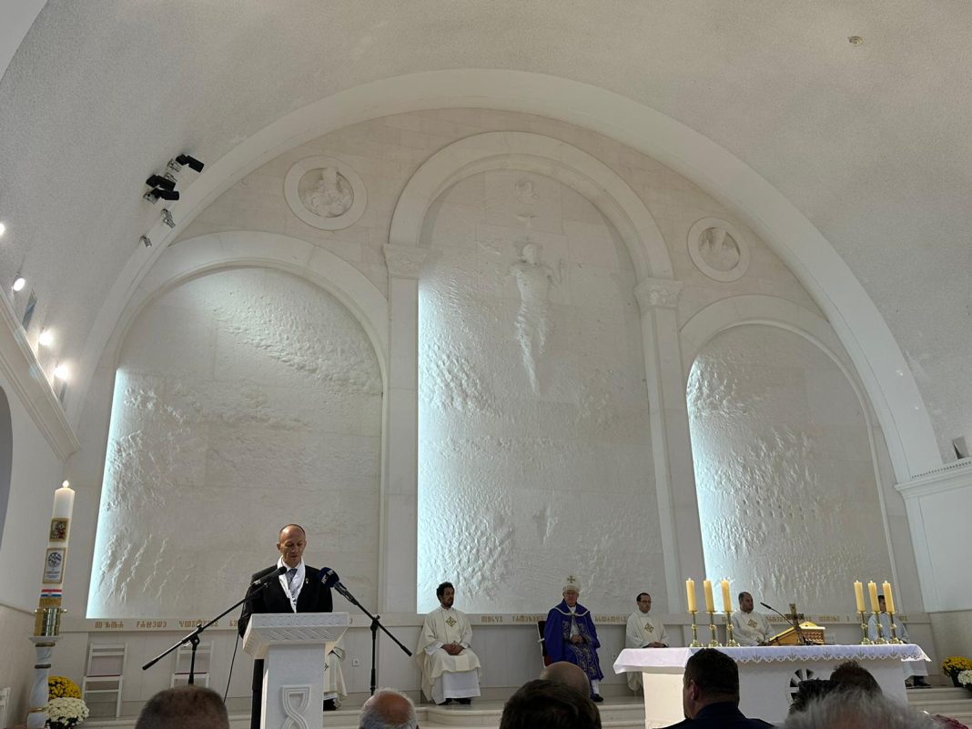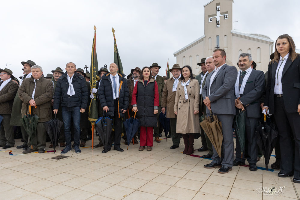 Nakon misnog slavlja lovci su položili u Spomen parku Crkve hrvatskih mučenika Spomen kamen svim preminulim lovcima braniteljima .