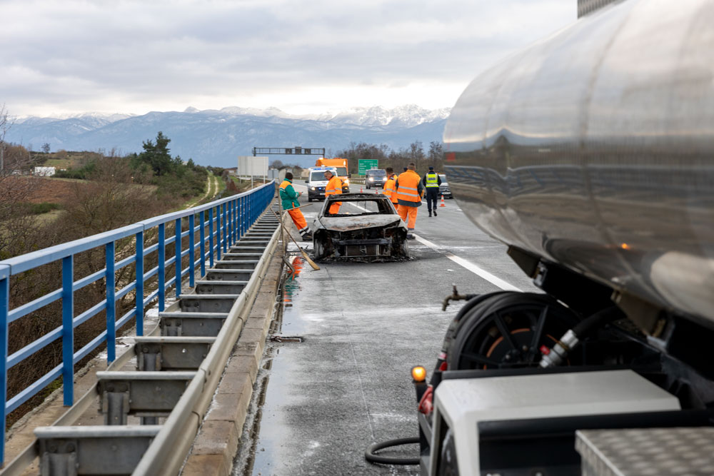 Na autocesti A1 kod Gospića u nedjelju popodne došlo je do požara na osobnom vozilu, vozač je uspio skrenuti s automobilom na zaustavnu traku te su obje osobe izašle iz auta i nisu ozlijeđene, priopćila je gospićko-senjska policija. Od vatrogasaca se doznaje da automobil nije imao vatrogasni aparat i sasvim je izgorio.