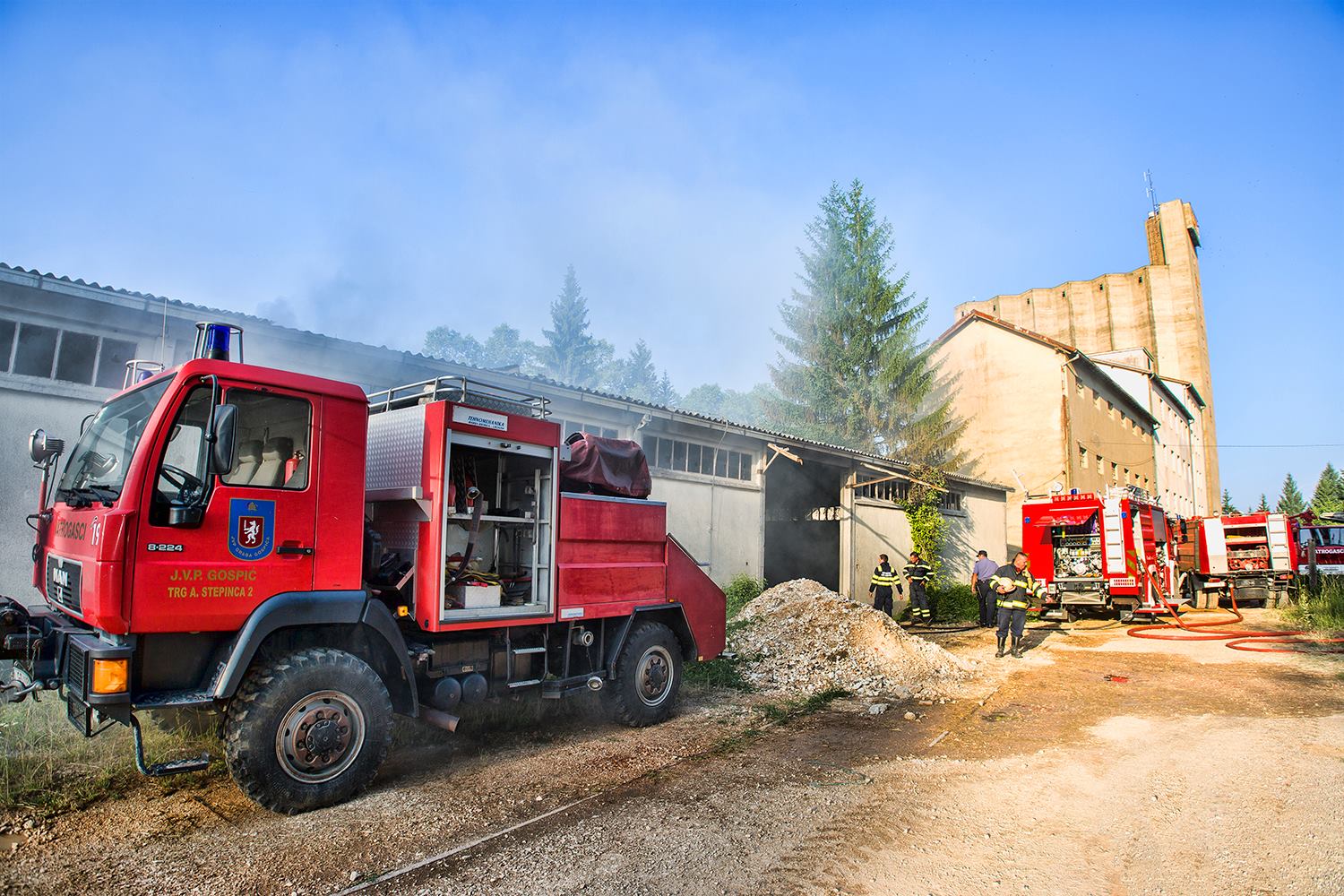 Vatrogasci su danas u 13:15 sati dobili dojavu da gori gospodarska zgrada, tj. skladište sijena na paromlinu. Na intervenciju je stiglo 5 vatrogasnih vozila, jedna navalno, tri cisterne i jedno šumsko vozilo. Šest vatrogasaca iz Gospića, dva iz Lovinca/Svetog Roka i tri vatrogasca iz DVD donjeg Pazarišta došli su na ispomoć sa cisternama zbog manjka vode za gašenja.