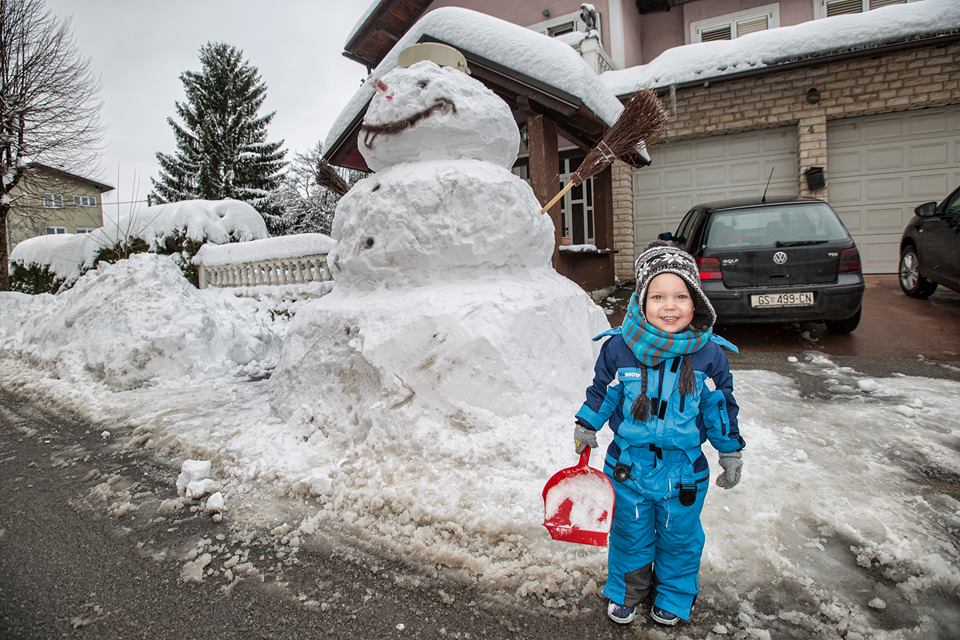Kad padne snijeg, s djetetom morate napraviti snjegovića, barem jednog. Sva djeca to vole, a sve što vam treba imate kod kuće ili možete pronaći vani. Uzmite iz hladnjaka jednu mrkvu, umjesto klasičnih komadića ugljena za oči, usta i gumbe jednako će dobro poslužiti i tamniji kamenčići, umjesto lonca, na glavu mu možete staviti i kapu, a umjesto metle možete upotrijebiti i grane.