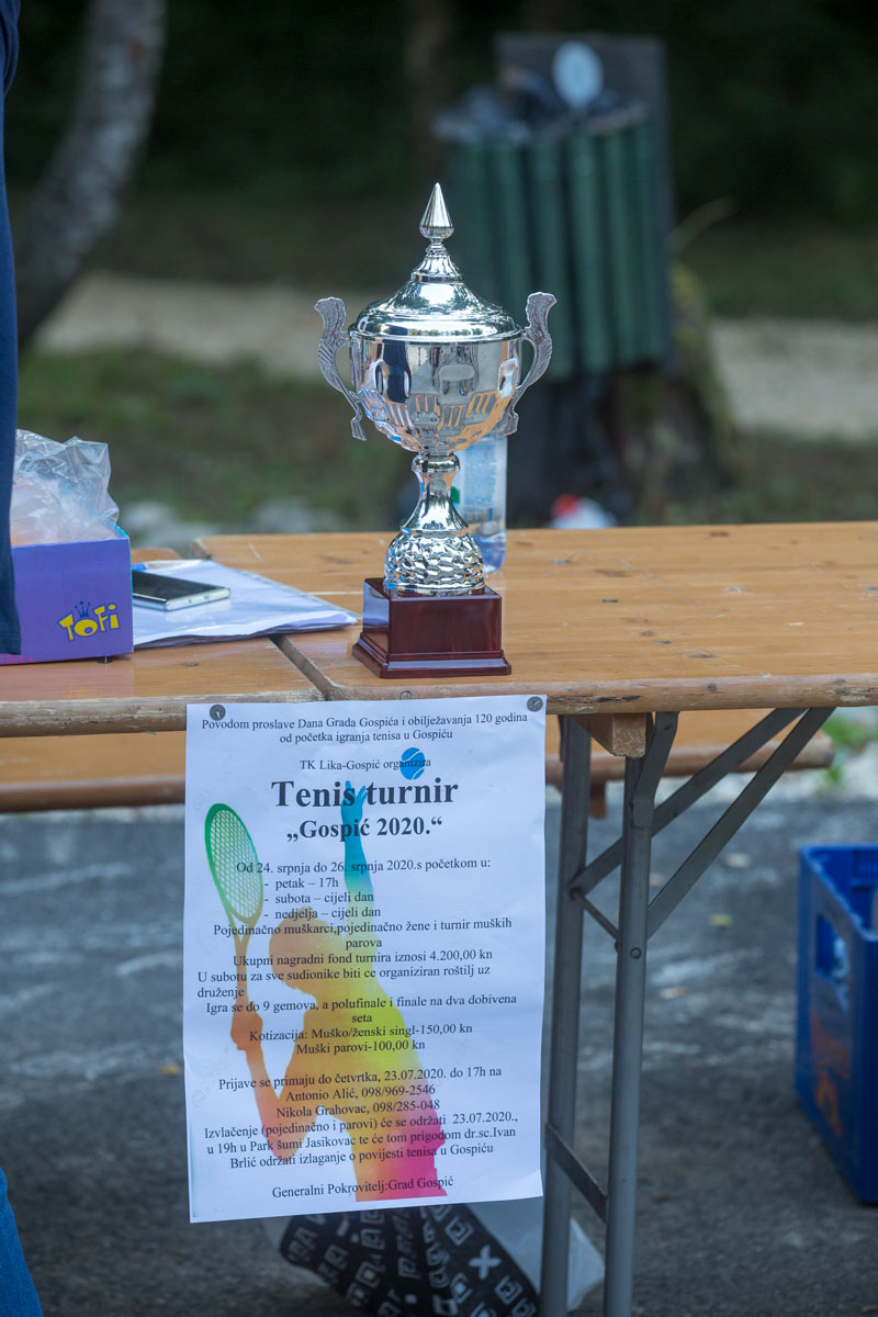 Na ovome mjestu se u srpnju 1900. godine sastao  Osnivački odbor kojim je pokrenut teniski klub Gospić. Igralo se po engleskim pravilima što znači da je Gospić tada išao u korak s vremenom. Postoje indicije da se tenis u Gospiću igrao i ranije, ali su prije 120 godina osnivanjem prvog lokalnog kluba bili udareni temelji igranja modernog tenisa na širem području južne Europe. Meni je vrlo drago da današnji gospićki klub dalje promiče i cijeni ideju vezanu uz teniske početke, kako u samom Gospiću, tako i daleko šire. Prije 120 godina na ovome mjestu tenis nije igrala samo tadašnja elita, nego su se u rad kluba postupno uključivali brojni građani. Tenis je tada bio priča oko „Sokolstva“, druženja i zabave tako da je njegov značaj daleko veći. Gospić je uskoro po početku igranja tenisa imao čak pet igrališta, što je za tadašnji gradić bilo jako puno, naglasio je dr. sc. Ivan Brlić.