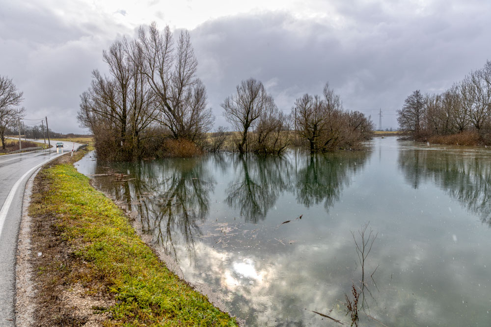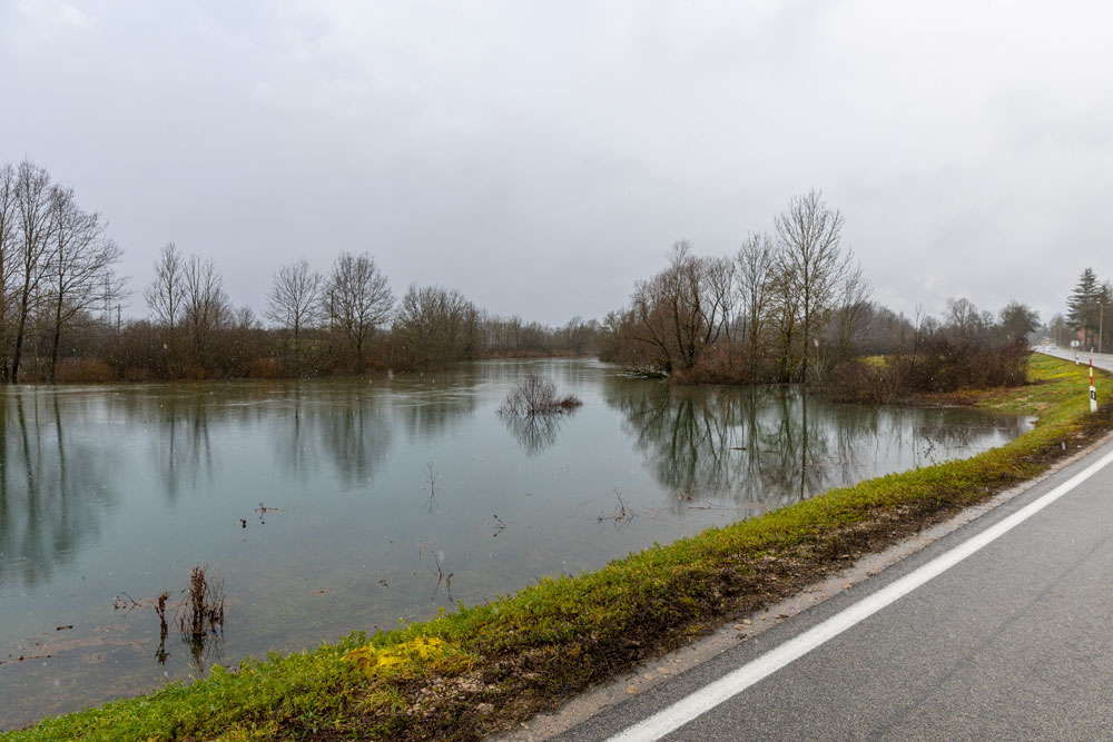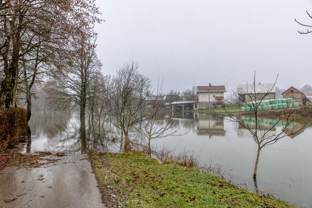 Prema informacijama Stožera civilne zaštite Perušić na gotovo čitavom vodotoku rijeke Like su uspostavljene mjere izvanrednog stanja obrane od poplava na hidrotehničkim objektima, posebice na kosinjskim dionicama Lika-donji tok i na retenciji Lipovo polje. Dotok rijeke Like u jezero Kruščica u Kosinju je u protekla 24 sata se udvostručio i narastao s 250 m3/s na 550 m3/s, koliko je izmjereno jutros u 6 sati. Prema ponorima u Lipovom polju se preljeva preko 600 m3/s vode, što dovodi do povećanja vodostaja na Selištu od 13-17 cm/sat. Na području Kosinja poplavljeno je više prometnica i to prema naseljima Bakovac, Podjelar, Sušanj, Rudinka i Sv. Ivan.