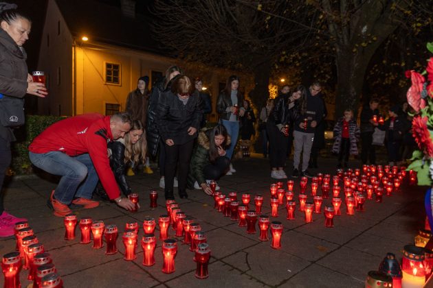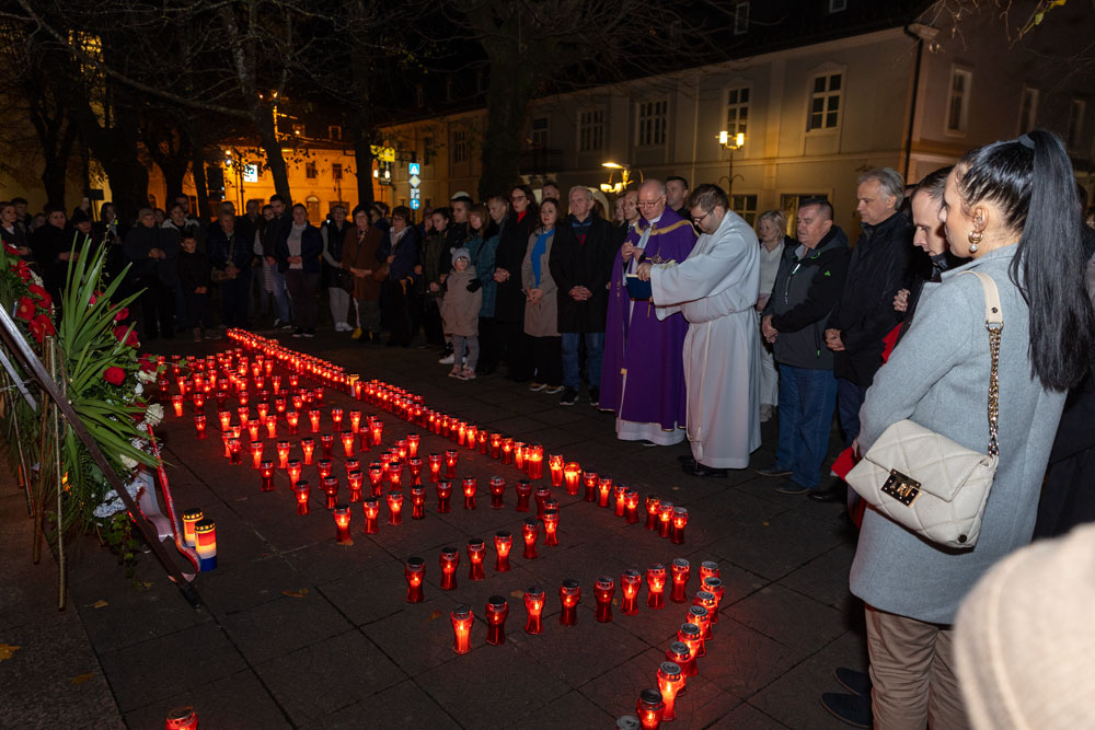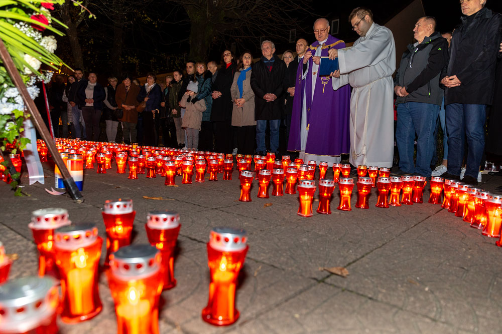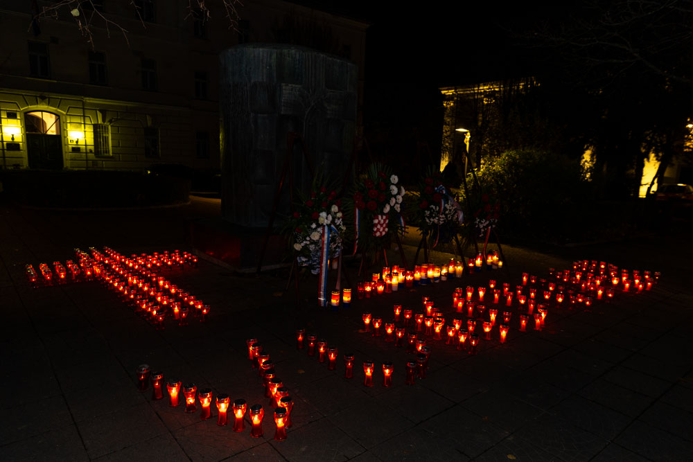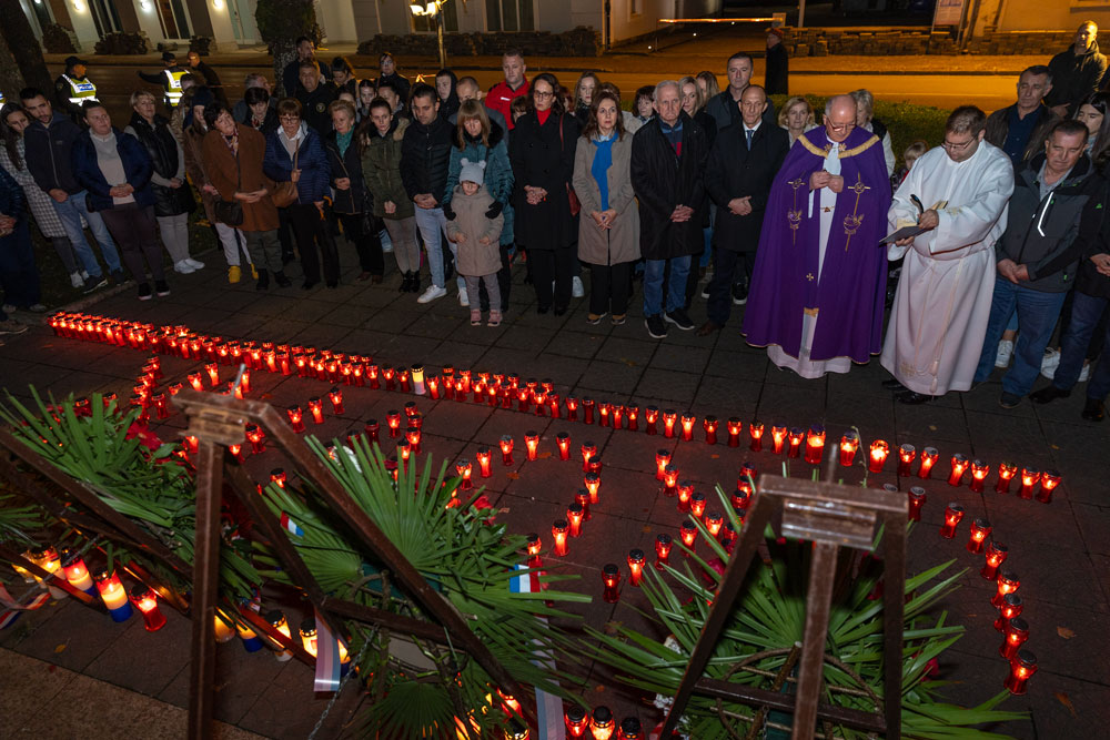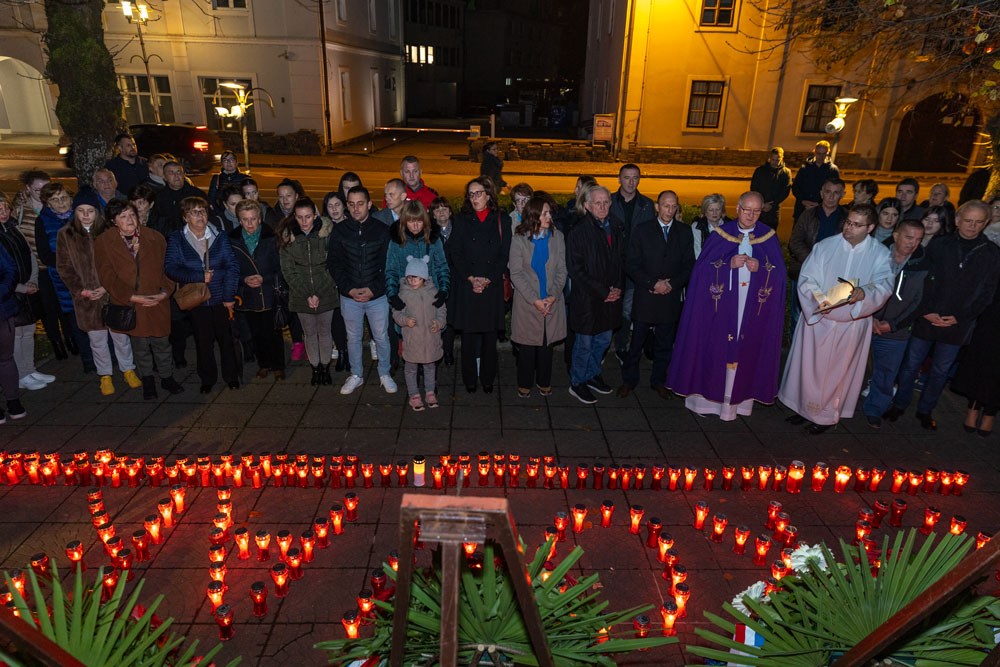 Nakon svete mise svim nazočnima su podijeljene svijeće s kojima su kod spomenika poginulim hrvatskim braniteljima i civilnim žrtvama rata položene činile natpis „Vukovar“. Budući da nije bilo dovoljno mjesta za svijeće svih koji su ih htjeli zapaliti, formirano je još nekoliko redova svijeća koje su obasijavale ovu hladnu jesensku noć. Riječi molitve je i na ovome mjestu predvodio župnik o. Knežević.