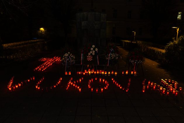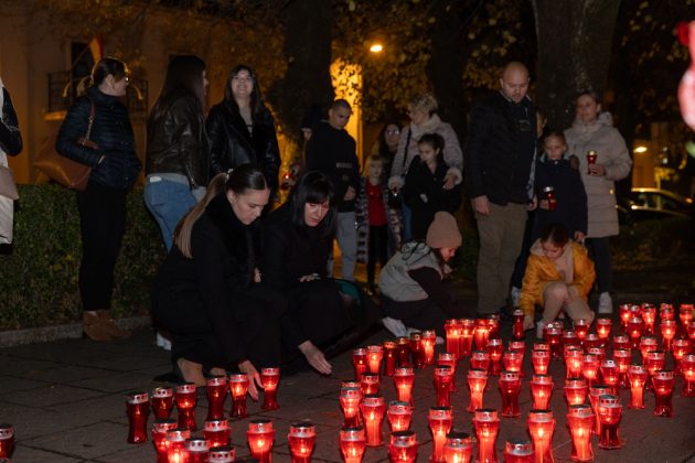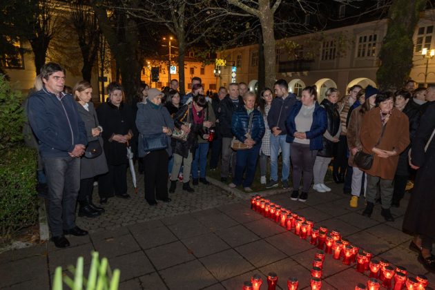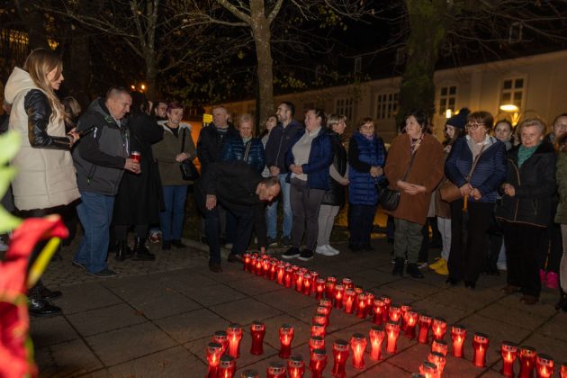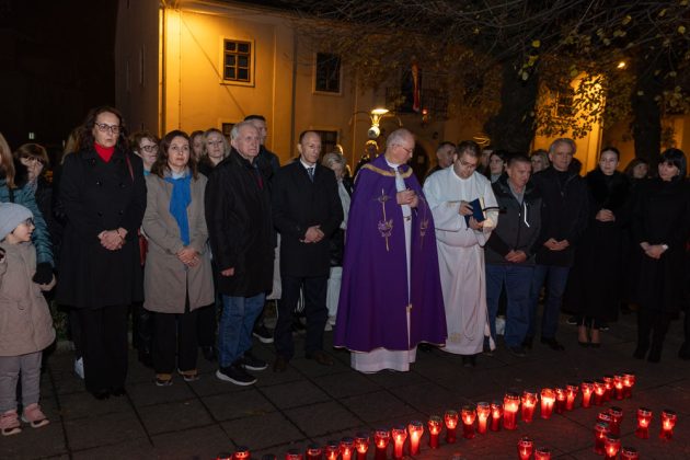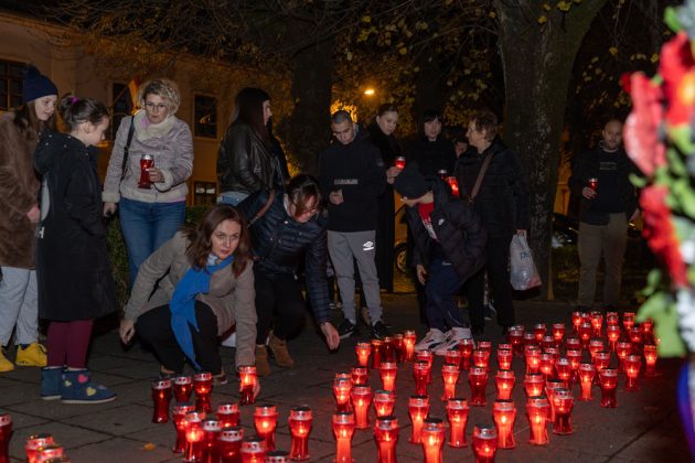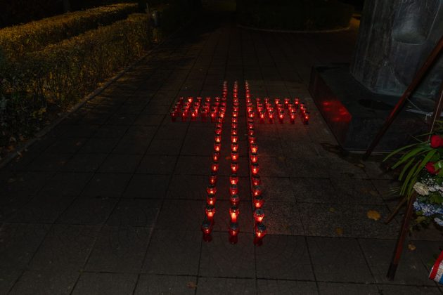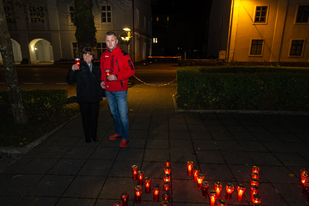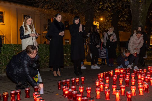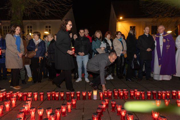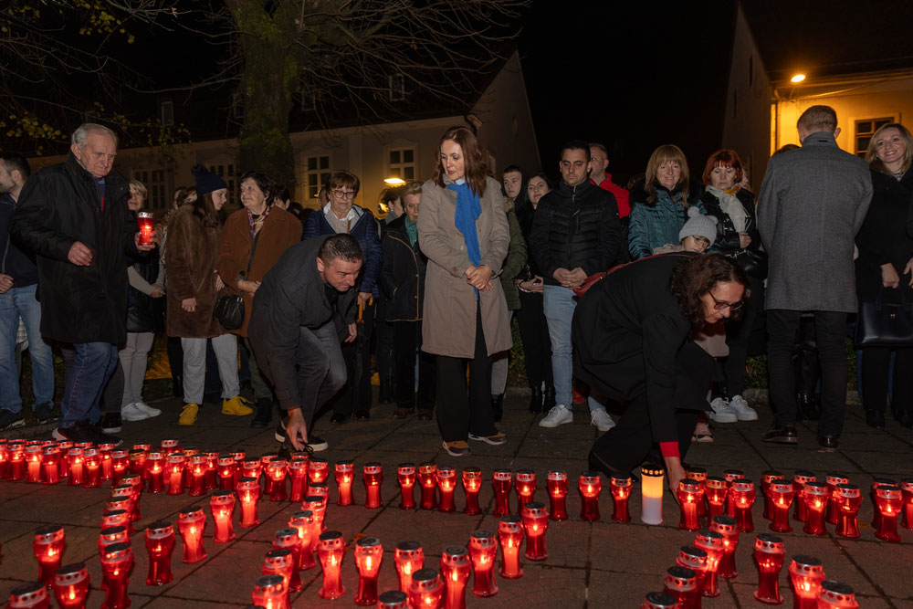 Nakon svete mise svim nazočnima su podijeljene svijeće s kojima su kod spomenika poginulim hrvatskim braniteljima i civilnim žrtvama rata položene činile natpis „Vukovar“. Budući da nije bilo dovoljno mjesta za svijeće svih koji su ih htjeli zapaliti, formirano je još nekoliko redova svijeća koje su obasijavale ovu hladnu jesensku noć. Riječi molitve je i na ovome mjestu predvodio župnik o. Knežević.