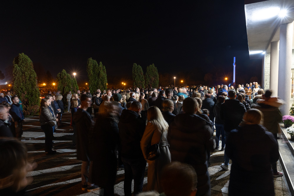 Nakon svete mise, uslijedila je zajednička molitva Božjeg odrješenja pred velikim križem, koju je predvodio otac Marko Maglić, dok su okupljeni vjernici u sabranosti i molitvi palili svijeće i ostavljali cvijeće na grobovima svojih bližnjih. Poseban ugođaj stvorila je tisućama lampiona obasjana noćna tišina groblja, koja je odzvanjala mirom, dostojanstvom i zahvalnošću.