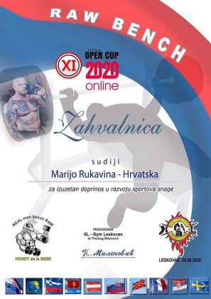 Tako se 25. lipnja prema unaprijed donesenome kalendaru trebalo se održati tradicionalno natjecanje u Srbiji, u gradu Leskovcu, pod nazivom „11. Serbia Open Raw Bench Press Cup“ po IPF pravilima. Organizator je odlučio da se ove godine natjecanje održi unatoč svemu, ali to kao online verzija. Prije samog natjecanja određene su propozicije ove posebne vrste natjecanja te su određeni suci iz raznih zemalja budući da se radi o međunarodnom karakteru natjecanja. Natjecatelji su prije dizanja snimili svoje vaganje, dokazali da je vaga ispravna vaganjem ploča utega. Nakon vaganja snimili bi svoje dizanje, uz prikaz težine koja je stavljena na šipku te bi snimku slali sudačkom odboru na ocjenu i priznavanje. Natjecanje je bilo otvoreno 10 dana, od 15. lipnja do 25. lipnja. Jedan od članova sudačkog žirija  bio je i naš sudac, Gospićanin Marijo Rukavina.