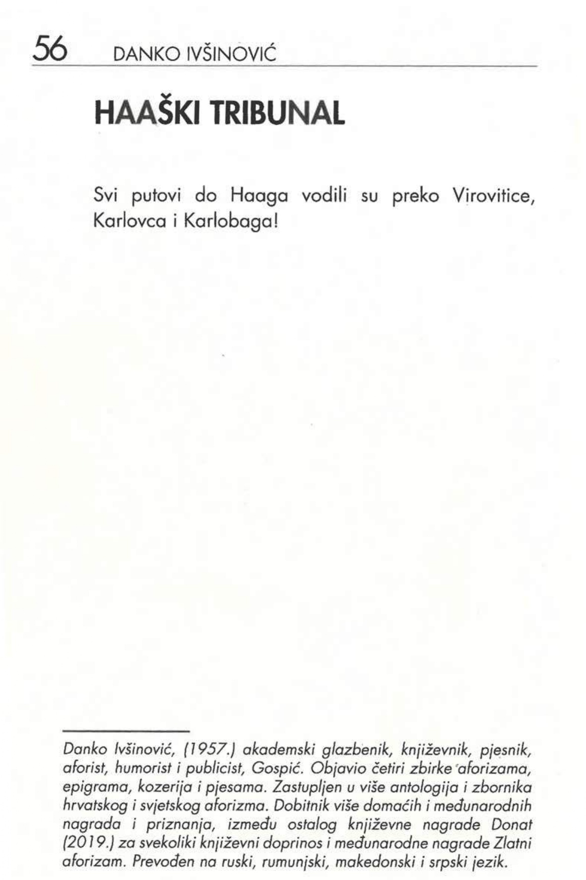 Ideja za natječaj inspirirana je „najkraćom pričom ikad ispričanom“ Ernesta Hemingwaya od samo šest riječi: Na prodaju dječje cipelice. Nikad nošene! U knjizi je na samo 63 stranice zastupljeno samo 35 autora među kojima i gospićki književnik Danko Ivšinović s pričom Haaški tribunal koja glasi: „Svi putovi do Haaga vodili su preko Virovitice, Karlovca i Karlobaga!“ Pobijedila je „priča“ varaždinskog književnika Denisa Peričića od samo jedne jedine riječi: Obadva!, koja prema odluci Prosudbenog suda koji su sačinjavali uglavnom hrvatski branitelji na najbolji način ilustrira pobjedu u Domovinskom ratu.