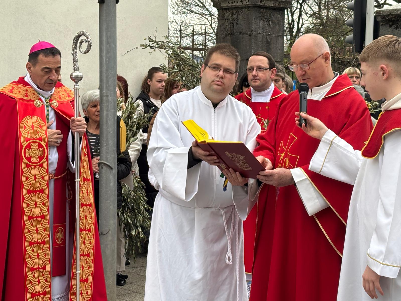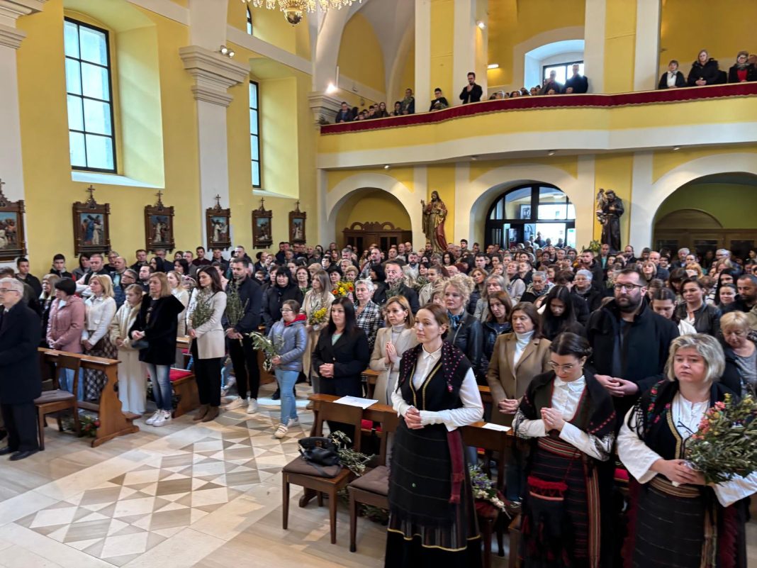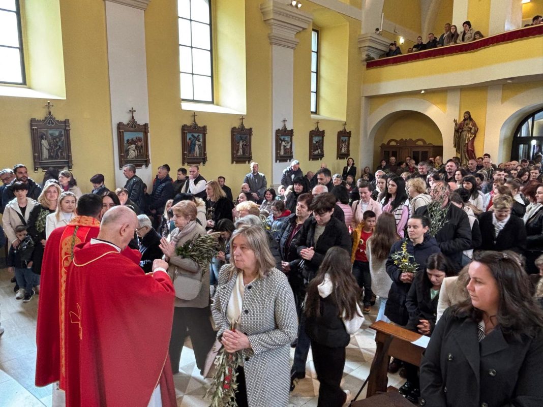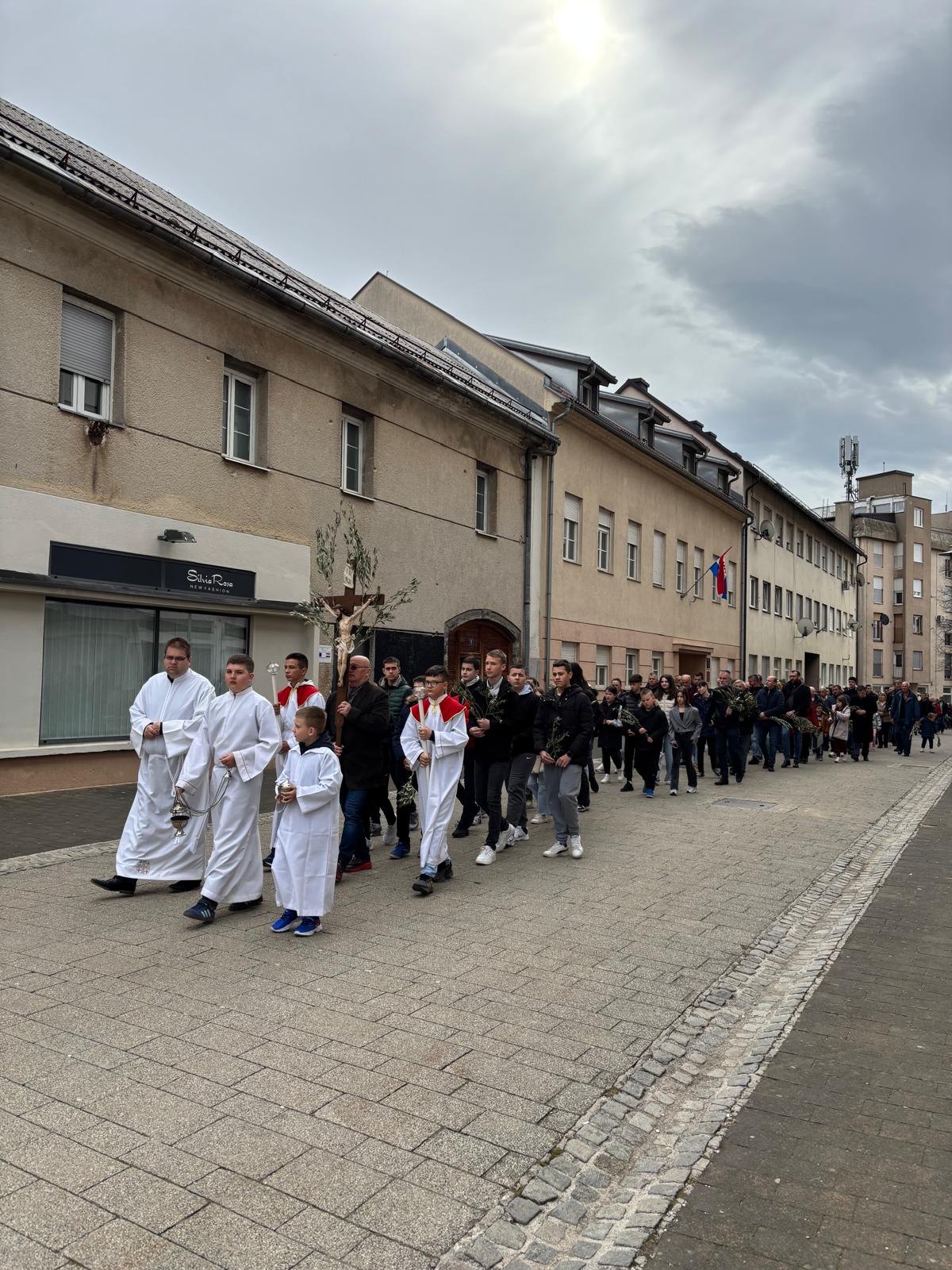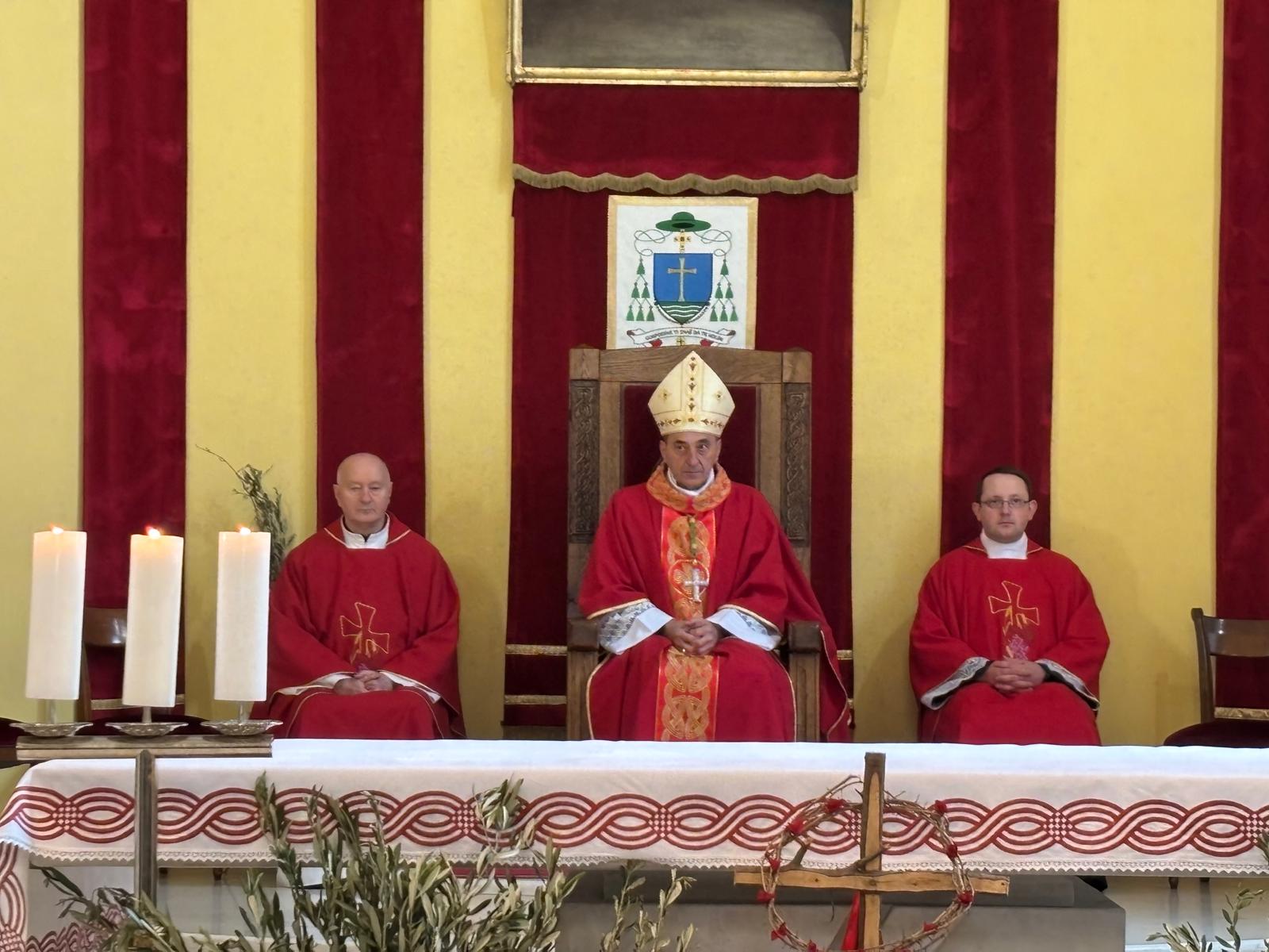 U svojoj homiliji biskup Medo, govoreći o događaju slavnog Isusovog ulaska u Jeruzalem, istaknuo je neodlučnost svjetine koja danas Isusu kliče, a sutra ga proklinje te se zapitao kakva je naša vjera i naš odgovor Kristu. Biskup je zatim rekao: „Danas gledamo Isusa kako ulazi u Jeruzalem: približio se Njegov čas, toliko iščekivani! Isus se pokazuje blag, dobar, miroljubiv, naizgled slab. Na takav način nas je naučio da je velika snaga svijeta dobrota: uistinu jak je samo dobar čovjek; uistinu jak je onaj koji je nadvladao nasilje u sebi; pobjednik je onaj tko daje svoj život za druge a ne onaj koji drugima oduzima život. Jesmo li prihvatili Njegovo učenje? Idemo li Njegovim putem?“ zapitao se biskup Medo.