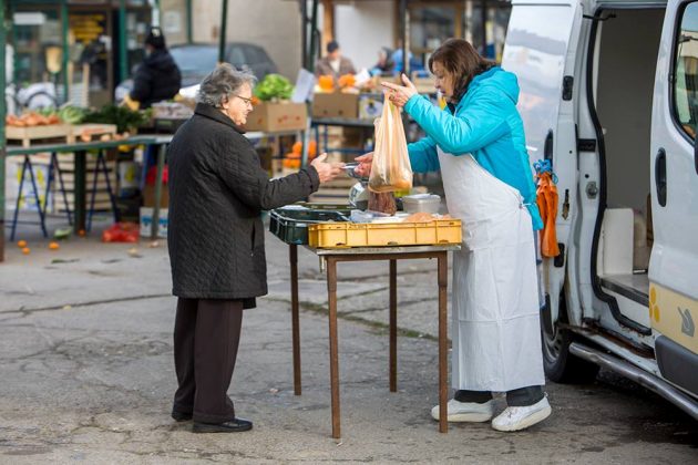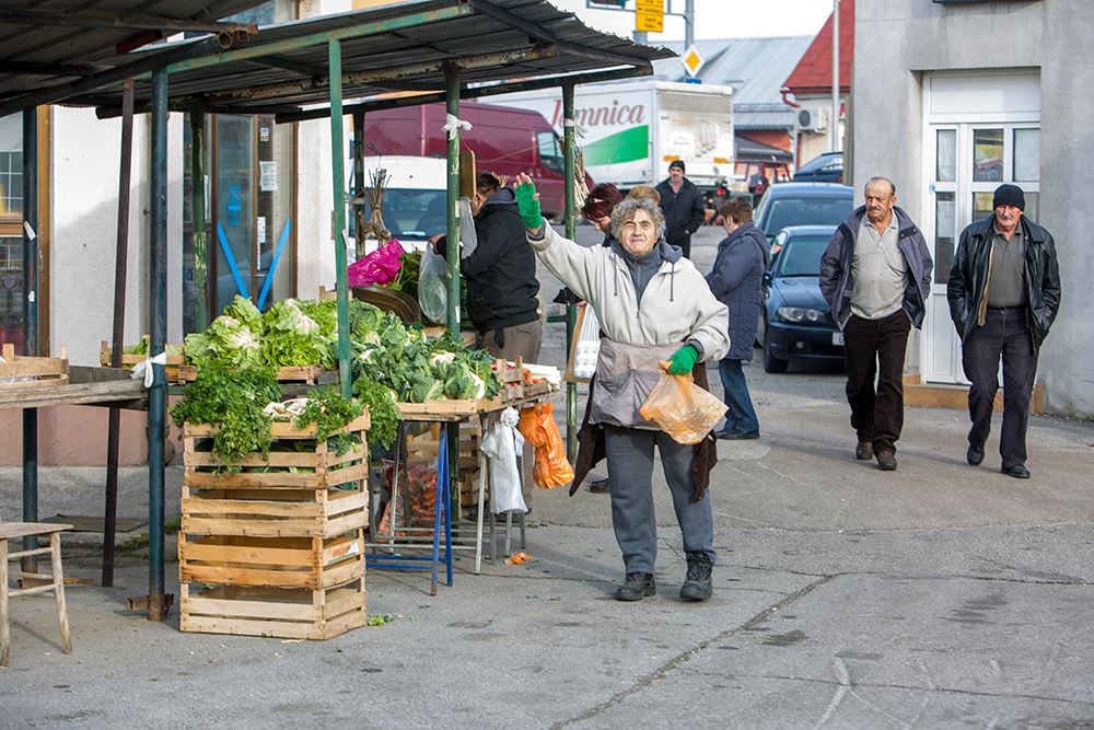 Iako se Gospić jutros probudio na samo – 1 stupanj C, što je osjetno toplije nego nekoliko dana prije, tradicionalna gradska tržnica petkom bila je sablasno prazna. Posjetili smo nekoliko trgovaca koji nam govore kako je uzrok slaboj posjećenosti kolinje koje je ovih dana u punom zamahu u Gospiću i široj okolici. Jedan trgovac povrćem kazuje nam kako je njegova roba puno kvalitetnija od one u velikim centrima, ali tvrdi nam kako su ljudi u ovo doba godine jednostavno bez novca. Na tržnici je danas dominirala zimska roba, voće i povrće…