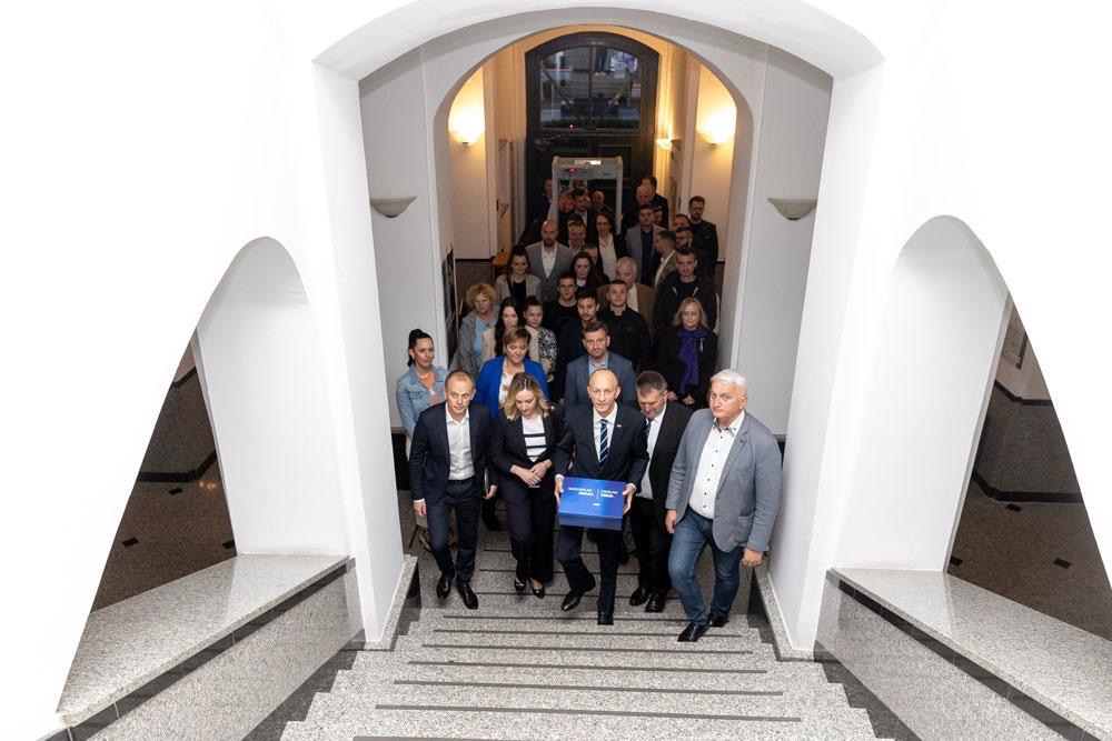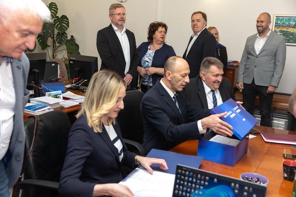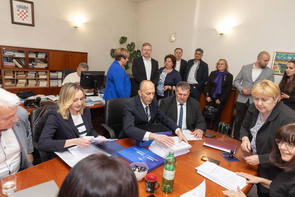 Atmosfera tijekom predaje potpisa bila je pobjednička, uz veliko zajedništvo koalicijskih partnera i članova.