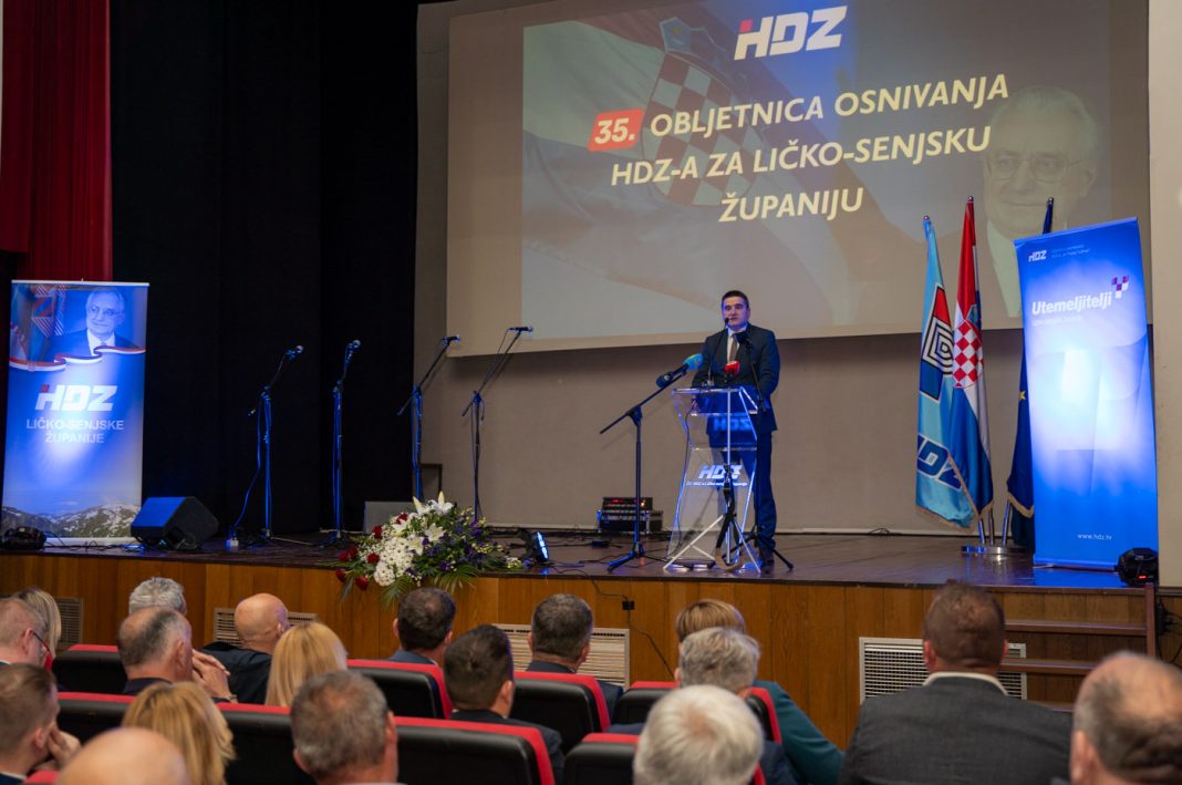 „I večeras ovdje u Gospiću svjedočimo istim onim emocijama i istom optimizmu koji smo osjećali prije 35 godina. I to, dragi prijatelji, ima isključivo i jedino Hrvatska demokratska zajednica. Čuvati sve to kroz godine nije bilo nimalo jednostavno – posebno ne u najtežim vremenima, u godinama koje su za Gospić i za Liku bile najteže u novijoj hrvatskoj povijesti, godinama Domovinskog rata. Gospić je bio na prvoj crti strahota velikosrpske agresije, ali hrabrost i odlučnost hrvatskog čovjeka, uz mudro vodstvo našeg prvog predsjednika, doktora Franje Tuđmana, donijeli su nam slobodu koju danas živimo. Evo nas danas, 2025. godine, i s ponosom slavimo 35. obljetnicu, kako je rekao predsjednik utemeljitelja. Tu obljetnicu slavimo u godini kada obilježavamo i 30 godina pobjede u Domovinskom ratu – za nekoliko dana obilježavamo 30. obljetnicu vojnoredarstvene operacije Bljesak, a 5. kolovoza i 30. obljetnicu vojnoredarstvene operacije Oluja. Ti datumi snažno oslikavaju naš narod i našu povijest. Ne smijemo zaboraviti ni 30. svibnja, kada obilježavamo 35 godina hrvatske državnosti. Posebno me raduje što danas, s odmakom vremena, možemo reći da Hrvatska demokratska zajednica i dalje slijedi isti smjer i put koji je zacrtao naš utemeljitelj i prvi predsjednik, dr. Franjo Tuđman – a danas ga nastavlja naš predsjednik Andrej Plenković.