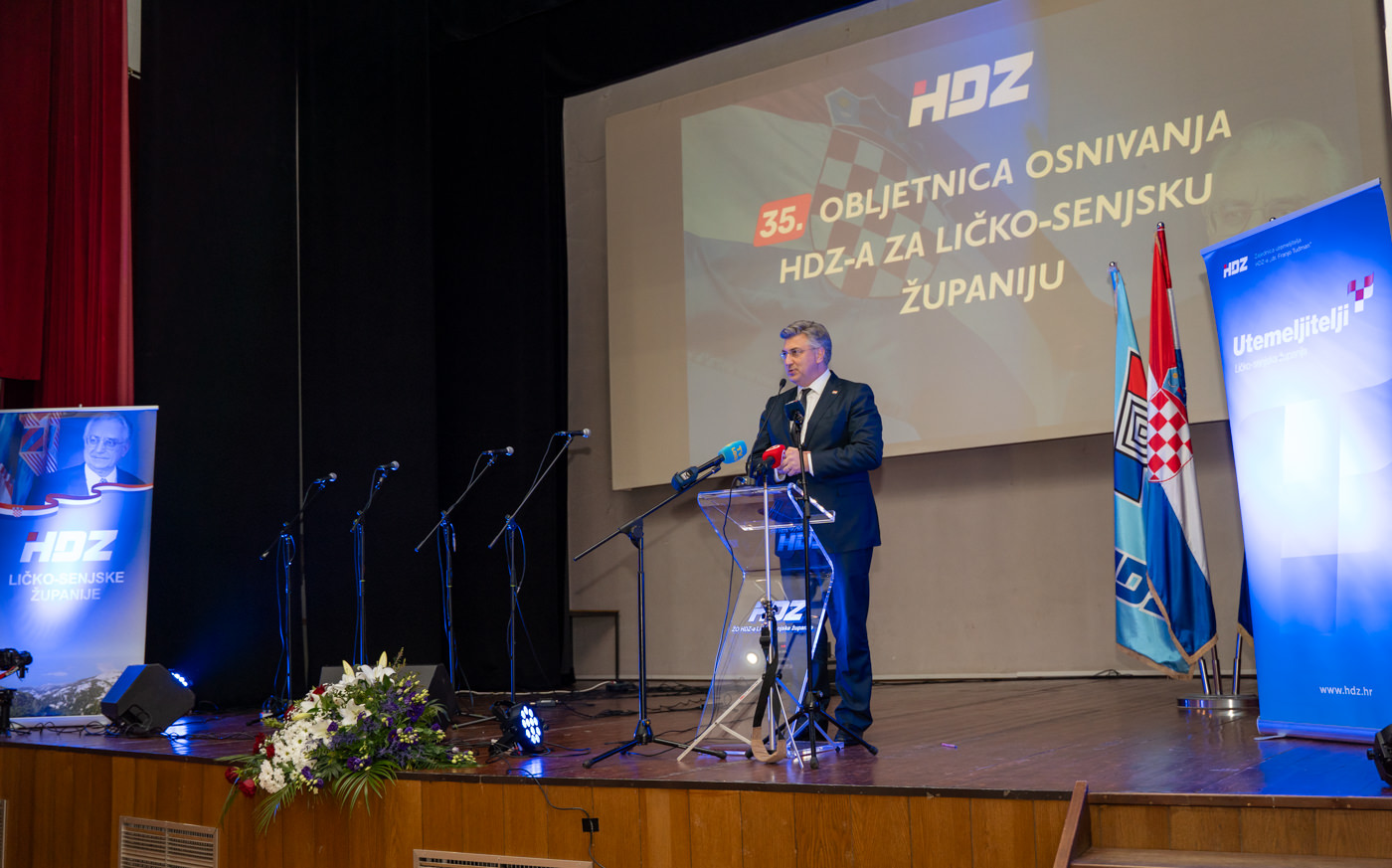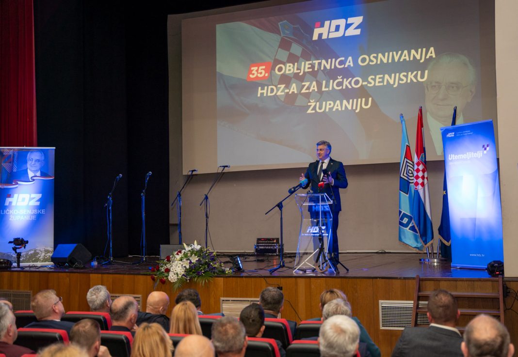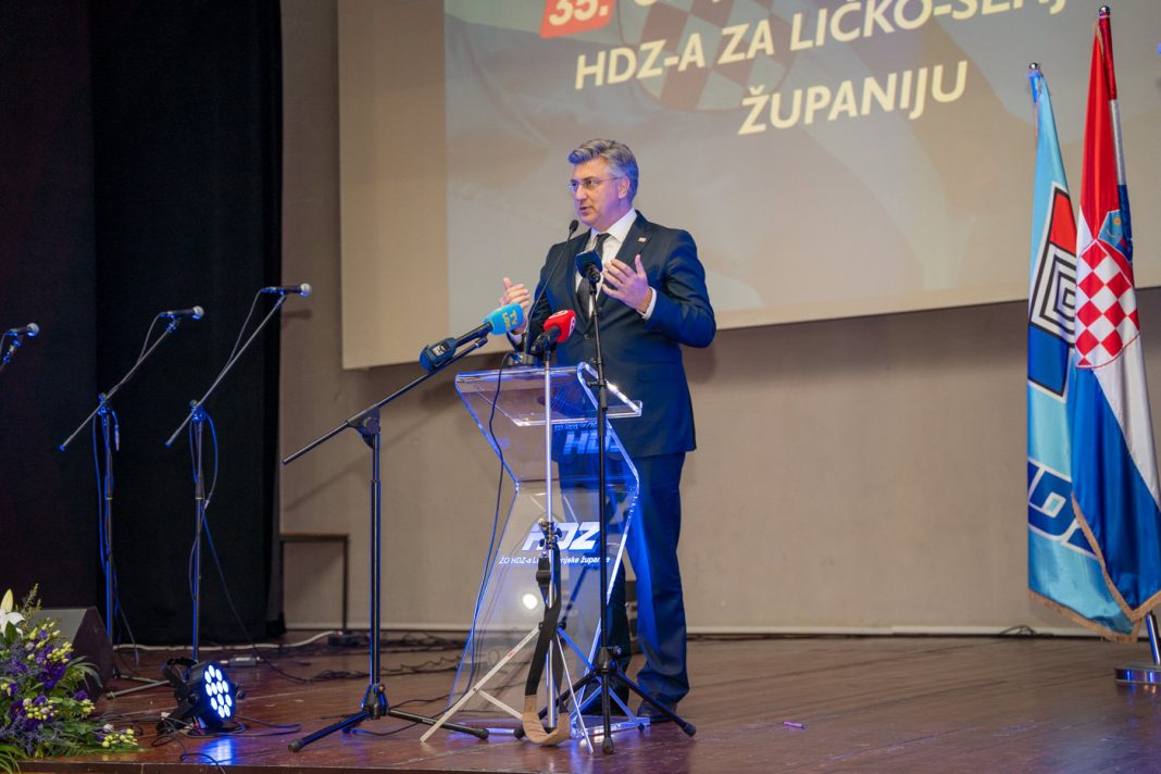 Plenković je istaknuo važnost uloge HDZ-a u Ličko-senjskoj županiji, nazvavši je snažnom utvrdom stranke s konkretnim i vidljivim rezultatima. Kazao je kako je nezaposlenost u Ličko-senjskoj županiji na povijesno najnižim razinama, brojni projekti se realiziraju, gospodarstvo se unapređuje, vodi se briga o starijima i obrazovanju.