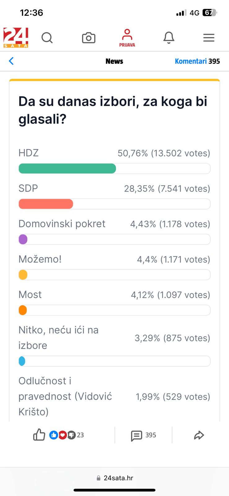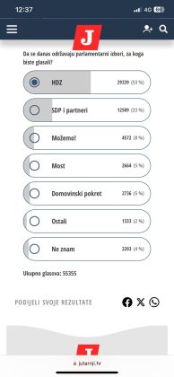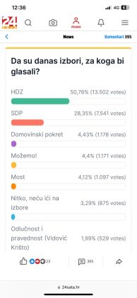 Unatoč nedavnim političkim izazovima i oštrim kritikama upućenim od strane predsjednika Zorana Milanovića, koji je kršeći Ustav krenuo u okršaj s vladajućima, HDZ nastavlja uživati značajnu podršku birača. Prema anketama provedenim na portalima 24 sata i Jutarnjeg lista, HDZ zadržava vodeću poziciju s 50,76%, odnosno 53% glasova. Ovakvi rezultati ukazuju na to da HDZ-ova baza ostaje stabilna i lojalna usprkos trenutnoj turbulentnoj političkoj klimi. SDP, kao glavni opozicijski konkurent, zaostaje s 28,35%, prema 24 sata, dok anketa Jutarnjeg lista bilježi 23% podrške za SDP i njihove partnere.