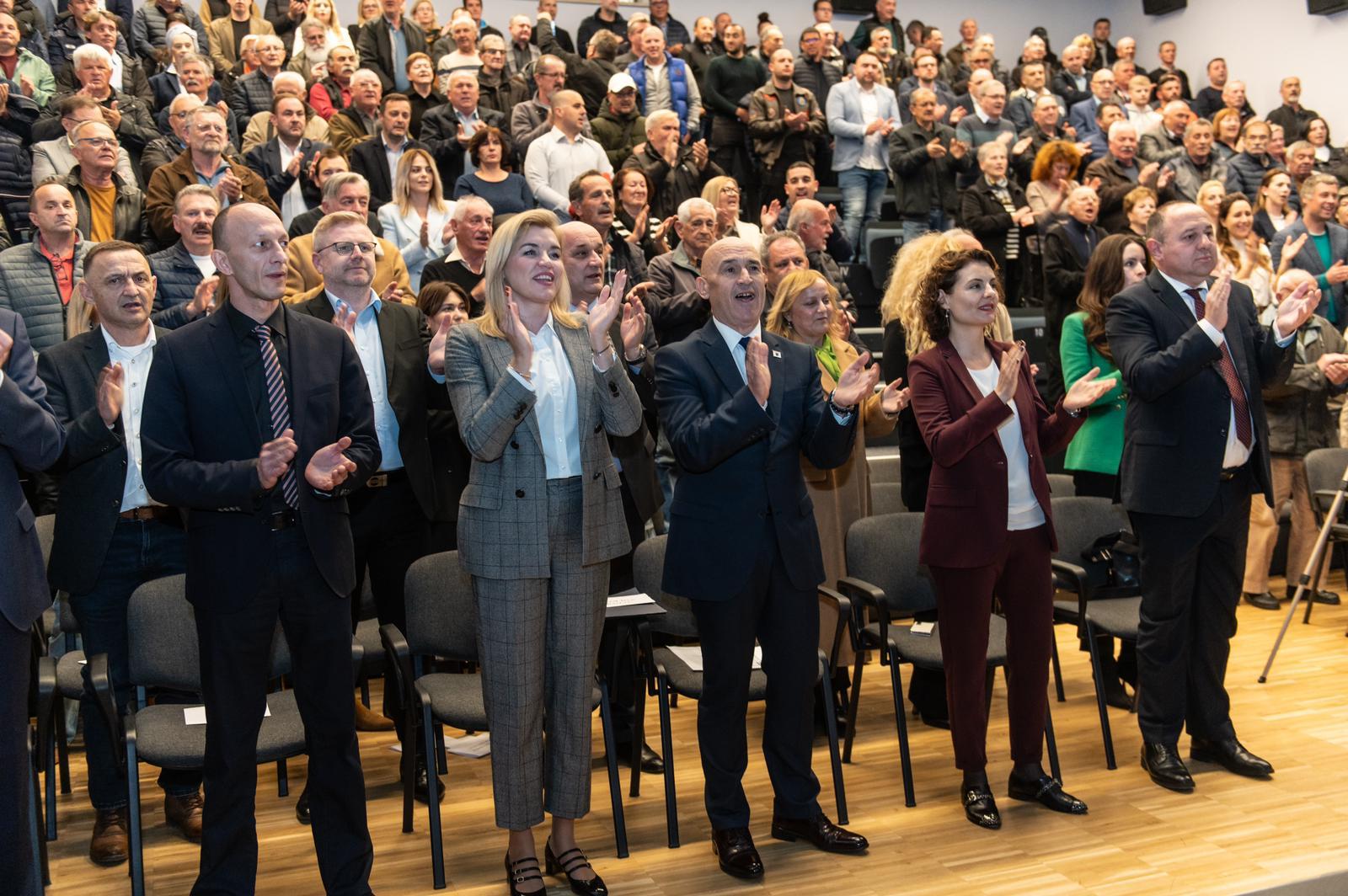 Uz klapu Bonaca sudionici su zapjevali te veseli dočekali sljedećeg govornika, predsjednika Županijske organizacije HDZ-a i župana ličko-senjskog Ernesta Petrya.