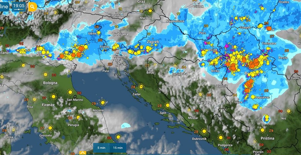 Hladna fronta ulazi u Hrvatsku, sve više grmljavinske aktivnosti ima diljem unutrašnjosti, a uskoro će biti i na sjevernom Jadranu, kasnije navečer i u Dalmaciji!