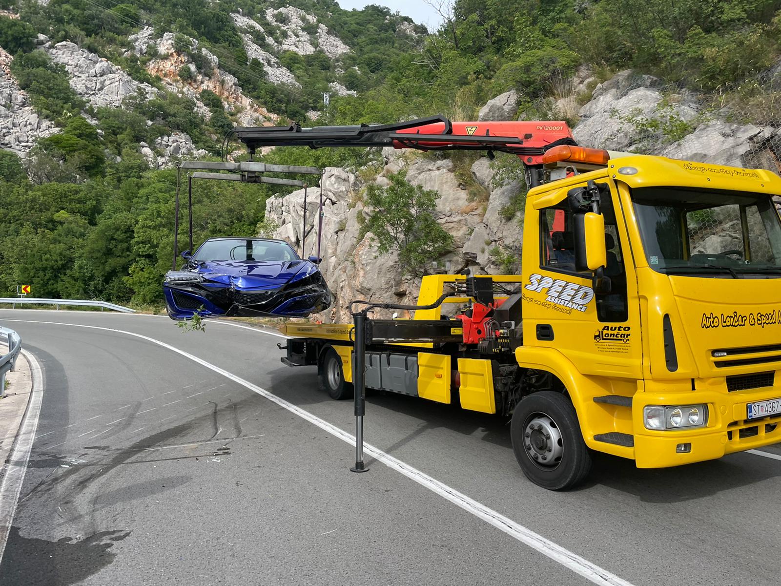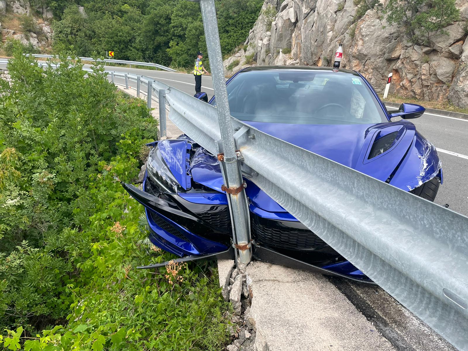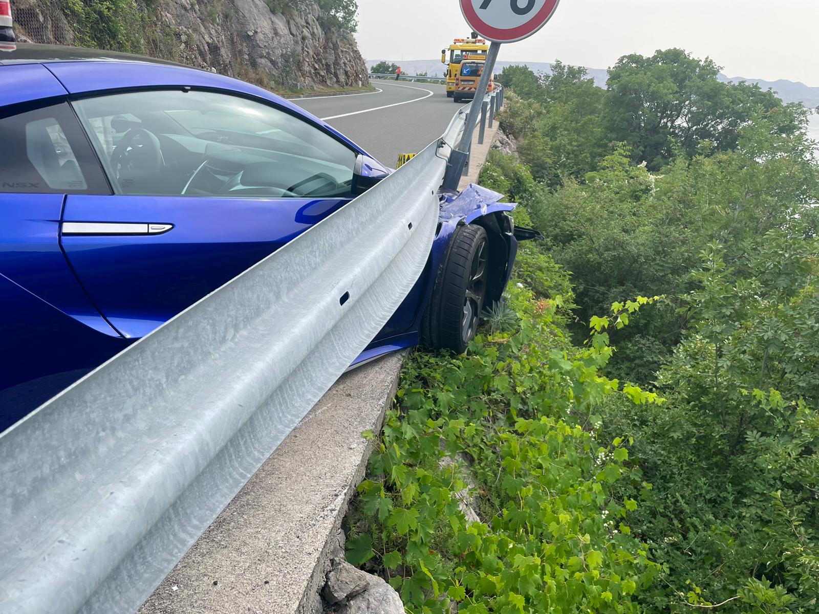 Danas oko 15:00 sati 7 km od Karlobaga smjer Zadar, iz sada nepoznatih razloga vozač Honde NSX zabio se u zaštitnu ogradu.