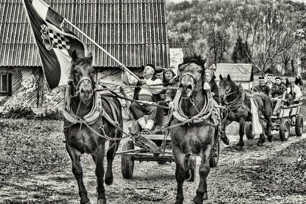Na pragu kuće Suknaić u Budžaku zatekli smo gazdu kuće kako dočekuje svadbu koja dolazi sa konjima i dvije kočije. Gazda je dobro naoružan kuburom zaustavio svadbu (Scenski prikaz ličkih svadbenih običaja u izvedbi FA dr. Ante Starčević) na pragu kuće, a sve je to zabilježila ekipa HRT-a koja snima dokumentarni film ličkih običaja i ličke svadbe.
