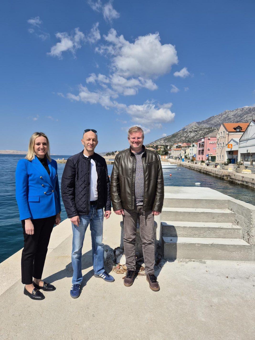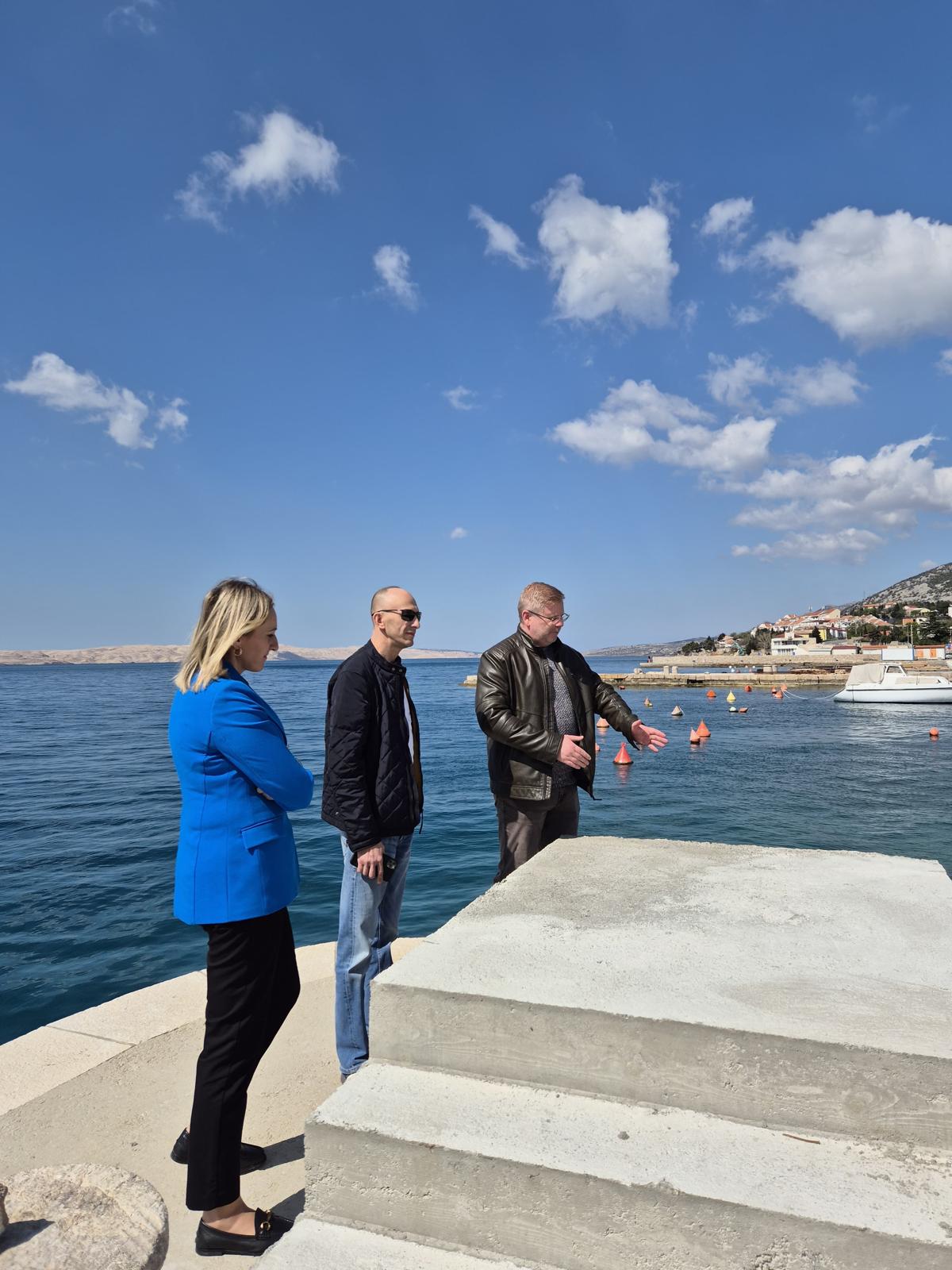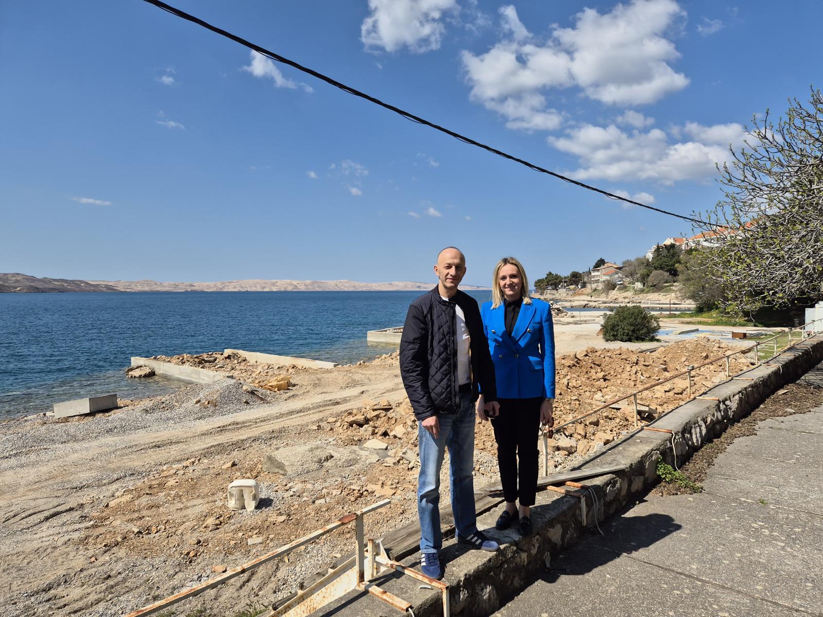 Nakon obilaska osnovne škole, župan Petry i zamjenica župana Orešković Brkljačić u pratnji načelnika Općine Karlobag Borisa Smojvera obišli su lokacije na kojima su u tijeku značajni infrastrukturni projekti, a jedni od njih su izgradnja pješačkog mostića između rive i lučice čija ukupna vrijednost iznosi 150 tisuća eura, kao i radove na sanaciji hotelske plaže u vrijednosti od 900 tisuća eura kojom realizacijom će se značajno podići kvaliteta života stanovnika i unaprijediti turistička ponuda ovog kraja.