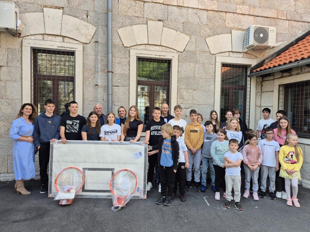 Osnovnoj školi “Šime Starčević” u Karlobagu danas je uručena donacija za opremanje košarkaškog dijela školskog igrališta, odnosno table za košarku i koševi za vanjsko igralište iz razloga dotrajalosti postojeće opreme.