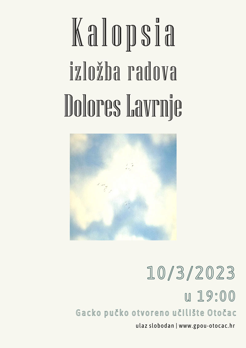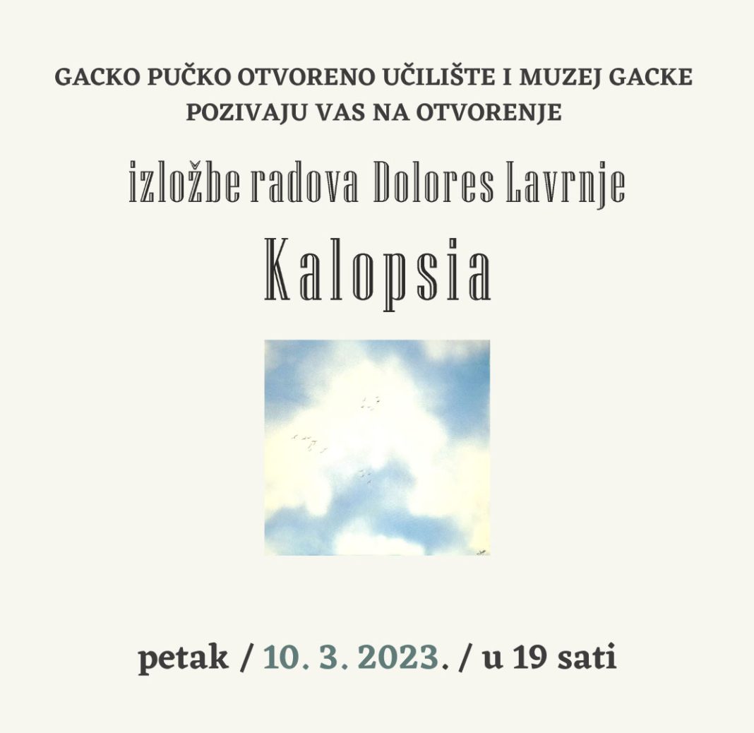 Izložba radova Dolores Lavrnje – Kalopsia bit će otvorena 10. 3. 2023. (petak) u 19 sati u Muzeju Gacke pri Gackomu pučkom otvorenom učilištu Otočac.
