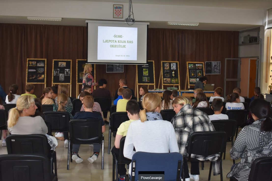 Izložba fotografija pod nazivom „Šuma okom šumara“ sa 17. Bjelovarskog salona fotografija danas je sa 120 umjetničkih fotografija postavljena u holu OŠ „dr. Jure Turić“ Gospić.