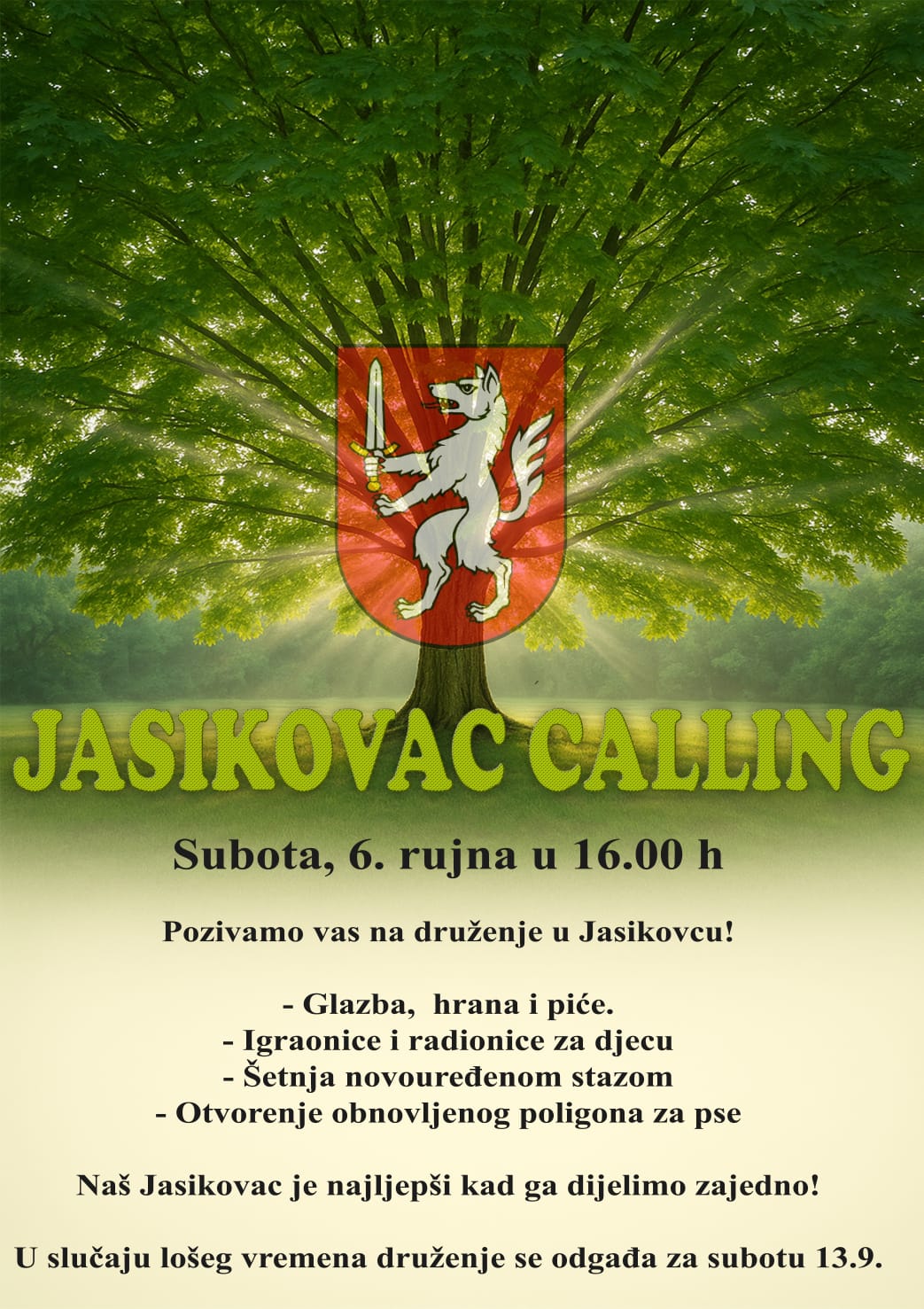U subotu, 6. rujna 2025. godine, s početkom u 16 sati, u Parku Jasikovac u Gospiću održat će se druženje pod nazivom Jasikovac calling. Građani će imati priliku uživati u prirodi, glazbi, hrani i piću, a za najmlađe će biti organizirane igraonice i radionice u suradnji s Društvom Naša djeca grada Gospića.