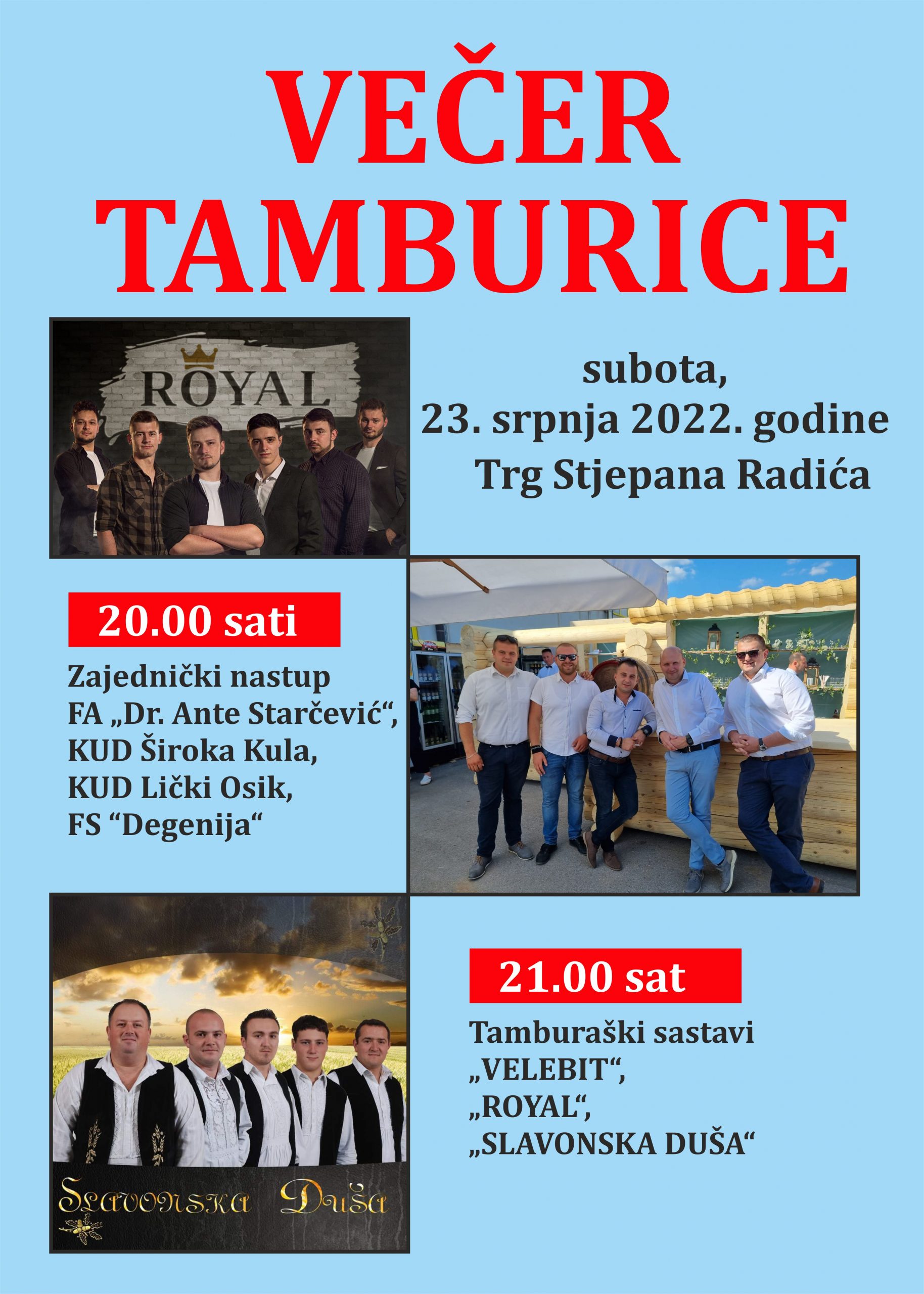 U raskošnoj salvi promašaja iz Gradske uprave Grada Gospića donosimo i jedan vezan uz najavljenu  „Večer tamburice“ koji se treba održati u subotu, 23, srpnja. Za tu večer je na plakatima i web-stranicama već najavljen nastup  FA “Dr.Ante Starčević“, HKUD-a Široka Kula, KUD-a Lički Osik, FS ” Degenija”. Netko je u svojoj brzopletosti zaboravio kako Degenija neće nastupiti, kao niti HKUD Široka Kula koji tu večer nastupa u Vrlici na Večeri kola, pisme i narodnih običaja. Ova je manifestacija već ranije dogovorena.