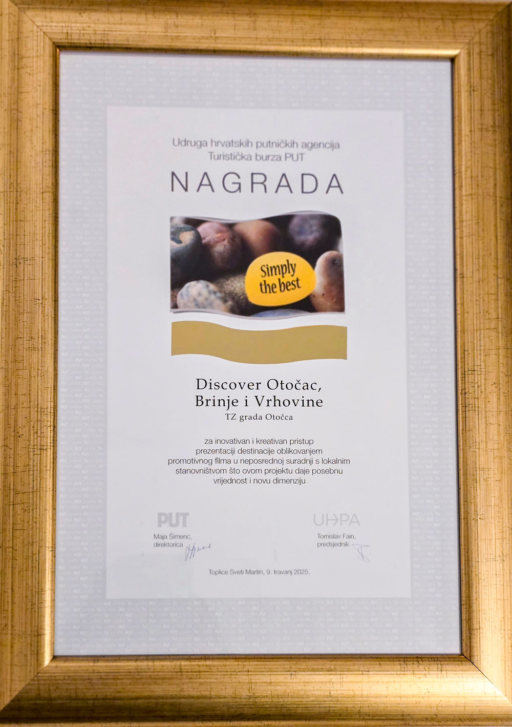 Svaka nagrada veliko je priznanje za trud i rad, no kad se radi o nagradi Simply the best, koja se dodijelila u sklopu 25. Burze PUT, Turističkoj zajednici Grada Otočca, veselje je još malo veće. Žiri Udruge hrvatskih putničkih agencija (UHPA) i Turistička burza PUT prepoznali su ljepote i turističke potencijale Otočca, Brinja i Vrhovina, koji poput bisera krase kontinentalni dio Hrvatske i iz godine u godinu privlače sve više pažnje.