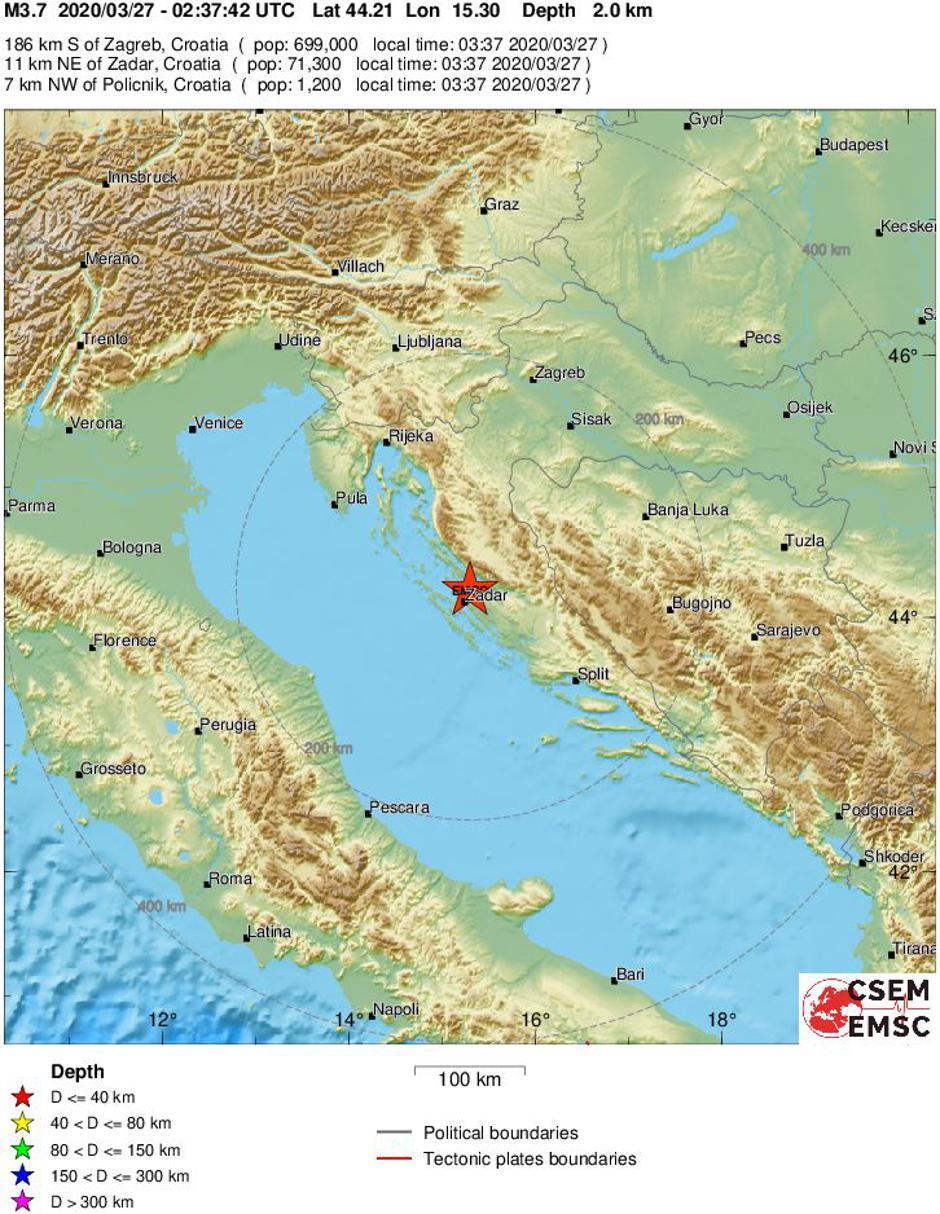 Čuli smo tutnjavu, kao da grmi. Bili smo budni, trajalo je nekoliko sekundi. Dobro nas je potreslo, komentar je jedne Zadranke na društvenim mrežama nakon što se noćas u 3 sata i 37 minuta zatreslo tlo kod Zadra. Prvi izvještaj Euromediteranskog seizmološkog centra govorio je da je potres bio magnitude 3,7 prema Richteru, što je jačina slična jednom od naknadnih potresa koji su proteklih dana zatresli Zagreb.