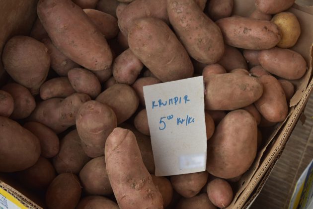 Krumpir je ove godine u Lici rodio enormno dobro, zdrav je i kvalitetan pa će uglavnom lako naći kupce. Pri tome mu je cijena po kiligramu 4 kune, a kupujete li više od 100 kilograma, cijena se spušta na 3,5 kuna ili čak i niže. Obilaskom gospićke tržnice danas smo zatekli cijenu od 5 kuna za kilogram. Naivno pitamo prodavača po čemu je njegov krumpir toliko poseban kada se tako skupo prodaje. Dobivamo doista originalan odgovor: