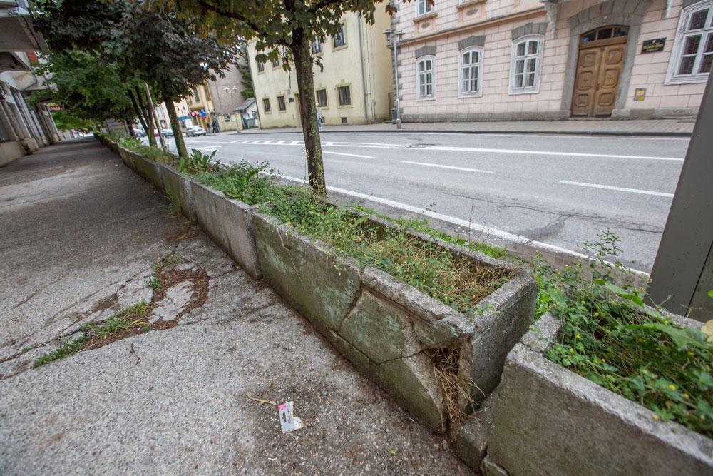 Oštećene i zapuštene žardinjere kao da nisu ničija briga. Prljave i neugledne postale su jedino „dom“ smeću i nepoznatim vrstama biljaka koje je ondje donio vjetar. Dodatak ovome neredu su i brojne fekalije ptica što se mjestimično gnjezde na stropovima prolaza i po nogostupima izbacuju svoj izmet kuda prolazimo pa povremeno padaju po ljudima.