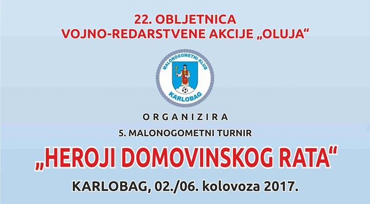 U Karlobagu se 2. i 6. kolovoza održava veliki malonogometni turnir „Heroji Domovinskog Rata“ posvećen svim stradalim hrvatskim braniteljima u Domovinskom Ratu. Ovaj malonogometni turnir koji se održava petu godinu zaredom povodom proslave dana Domovinske Zahvalnosti, dana Pobjede i dana Hrvatski Branitelja glavni je sportski događaj u Karlobagu koji se kroz cijelu godinu rado očekuje. Dvodnevni program proslave kreće 2. kolovoza na Općinskom groblju ispred središnjeg križa gdje će se položiti vijenci i zapaliti svijeće za sve stradale Branitelje, nakon uvodnog dijela održati će se misa zadušnica u crkvi Sv. Josipa, a večer će završiti izvlačenjem skupina malonogometnog turnira koji će se održati u nedjelju 6. kolovoza sa početkom u 16 sati na igralištu Laktinac u Karlobagu.