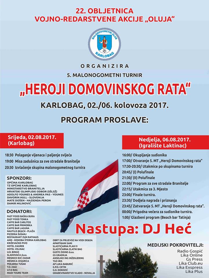 Organizatori Mnk Karlobag poziva još jednom sve da svojim dolaskom uveličaju dvodnevni program proslave u čast Hrvatskih Branitelja koji su živote položili na oltar Nezavisne i slobodne Hrvatske države.