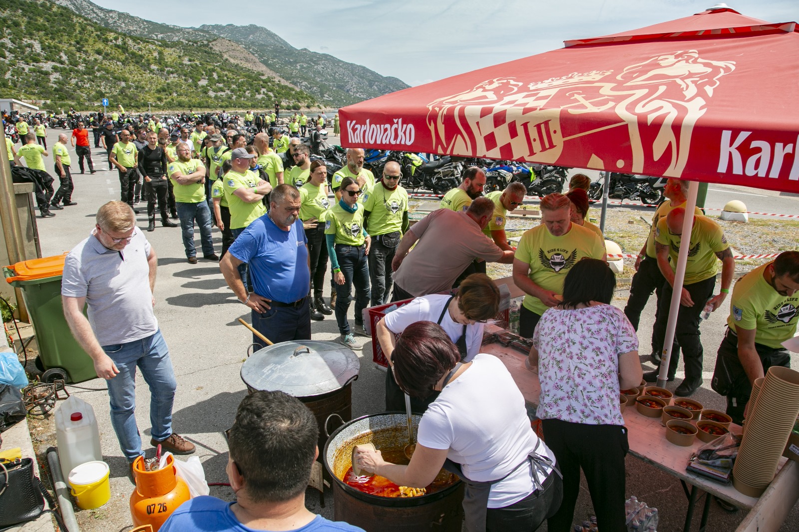 Jedna od stanica ove impresivne karavane, koja broji nekoliko stotina motociklista, bio je Karlobag. U Karlobagu su ih srdačno dočekali predstavnici Općine Karlobag, Turističke zajednice Općine Karlobag i komunalnog poduzeća Vegium. Organiziran je ručak za sve sudionike, a na meniju se našao ukusni gulaš i razni osvježavajući napici. Osim hrane i pića, motocikliste je pozdravio načelnik Općine Karlobag, Boris Smojver, koji je izrazio svoje zadovoljstvo što je upravo njihova općina odabrana kao jedna od stanica ovog hvalevrijednog događaja. Načelnik Smojver je sudionicima zaželio sretan put do krajnjeg odredišta, Splita.