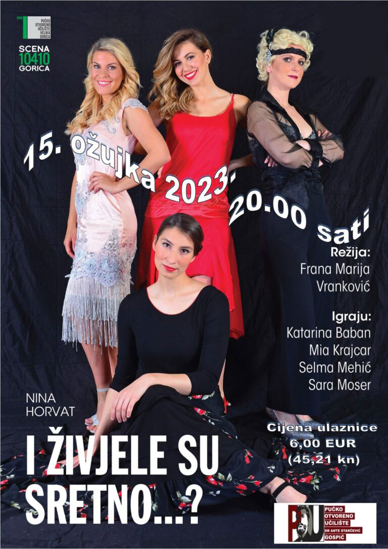 Kako funkcionira suvremeni brak, ima li smisla i što ga sve razara ili drži propitkivat će predstava „I živjele su sretno…?“ u kojoj će se, na Trnoružičinoj djevojačkoj zabavi naći Snjeguljica, Pepeljuga i djevojka s plaže kojom se zabunom oženio Sirenin princ. Oslanjajući se na izvorne verzije bajki o Snjeguljici, Trnoružici, Pepeljugi i Maloj Sireni te ostalih bajki braće Grimm i Charlesa Perraulta, predstava kreira bajkoviti svijet u suvremenom okruženju u kojem ništa nije onako kako se čini na prvi pogled…