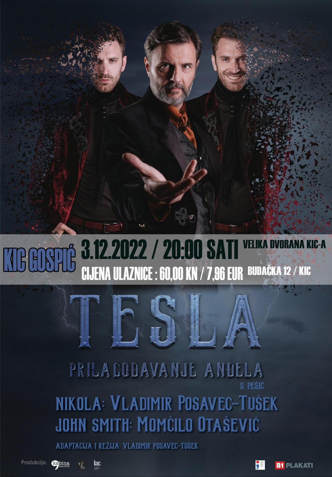 - KIC Gospić s ponosom vam predstavlja Vladimira Posaveca- Tušeka u ulozi jedinstvenog i neponovljivog Nikole Tesle i Momčila Otaševića u ulozi novinara Johna Smitha u predstavi Tesla- prilagođavanje anđela.
