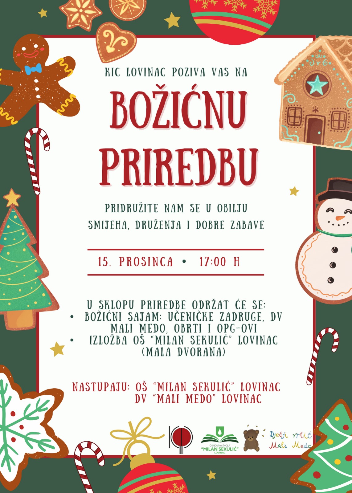 Priredba se održava u suradnji sa Osnovnom školom “Milan Sekulić” Lovinac i Dječjim vrtićem “Mali medo” Lovinac, a domaćin je velika dvorana KIC-a Lovinac. Ovo je prilika za sve mještane i goste da se okupe, druže i zajedno proslave predstojeće blagdane.