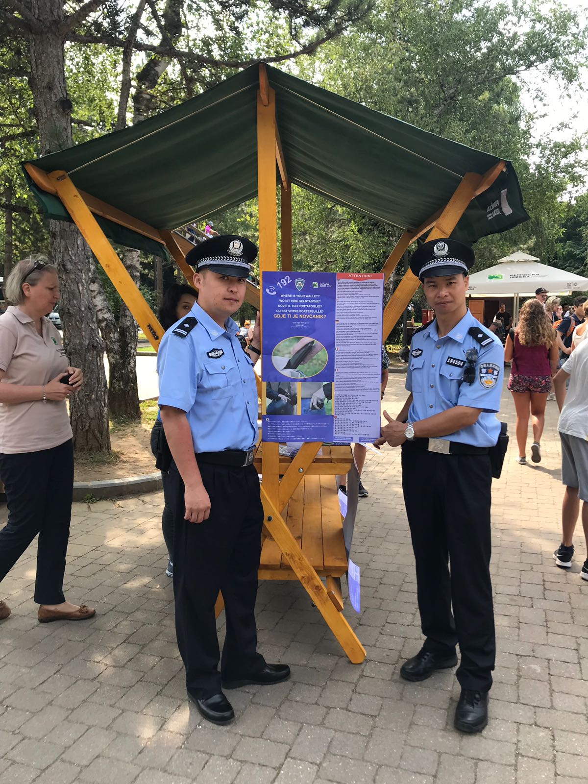 U sklopu projekta “Sigurna turistička sezona” koji turistima nastoji omogućiti što ugodniji boravak u našoj zemlji, a u cilju prevencije kaznenih djela imovinskog kriminaliteta, danas su u Nacionalnom parku Plitvička jezera policijske službenice za prevenciju Policijske uprave ličko-senjske zajedno sa kineskim policijskim službenicima na dva preventivna info punkta educirali i informirali turiste o mjerama samozaštite od kažnjivih radnji.