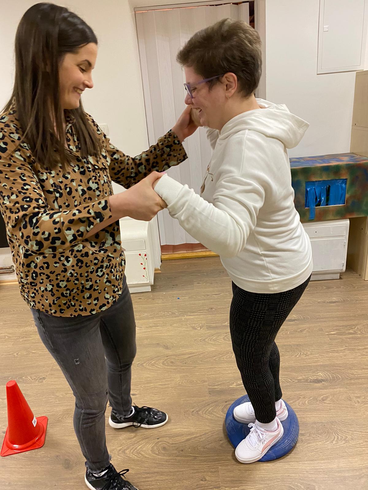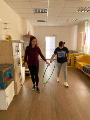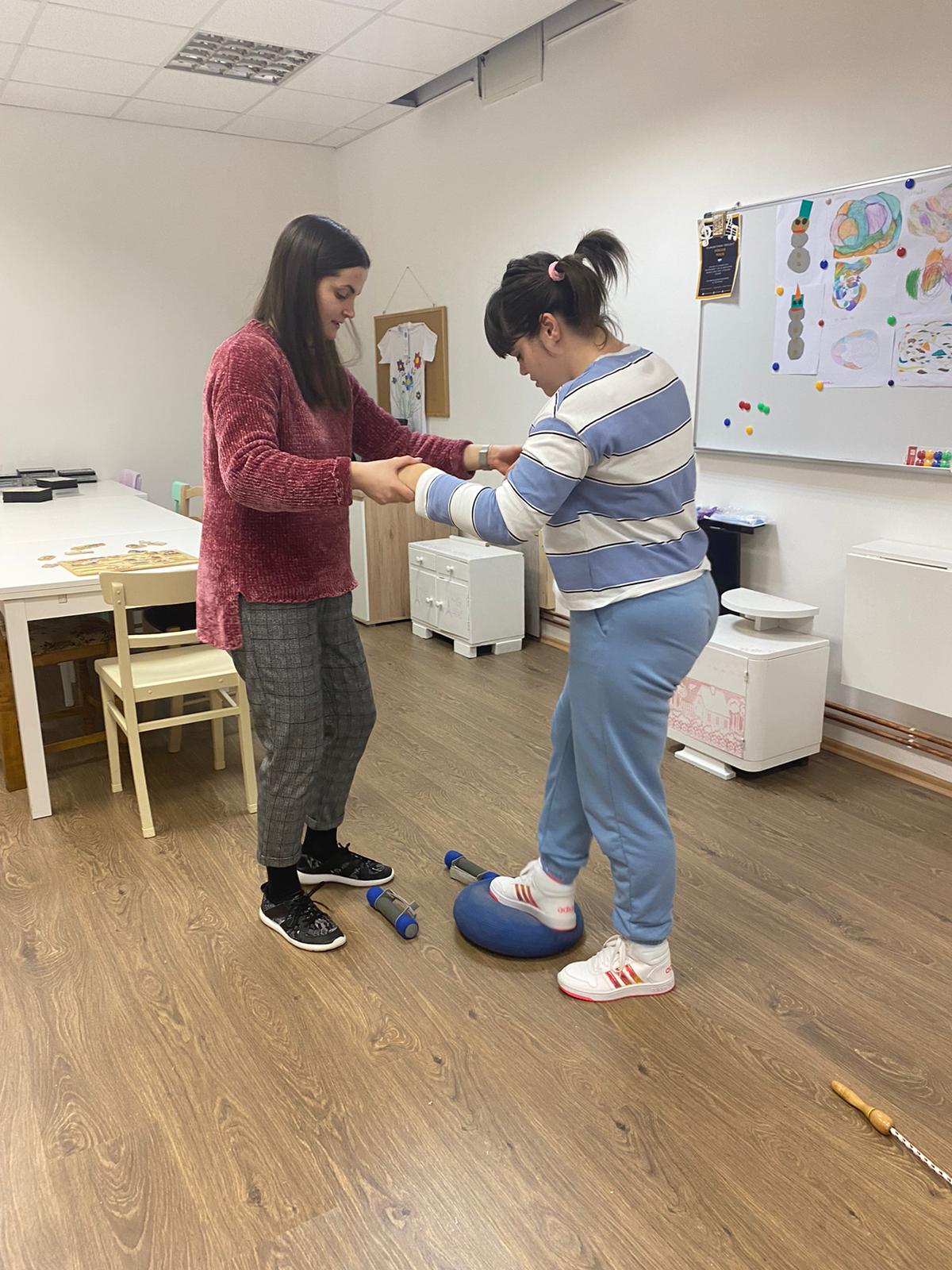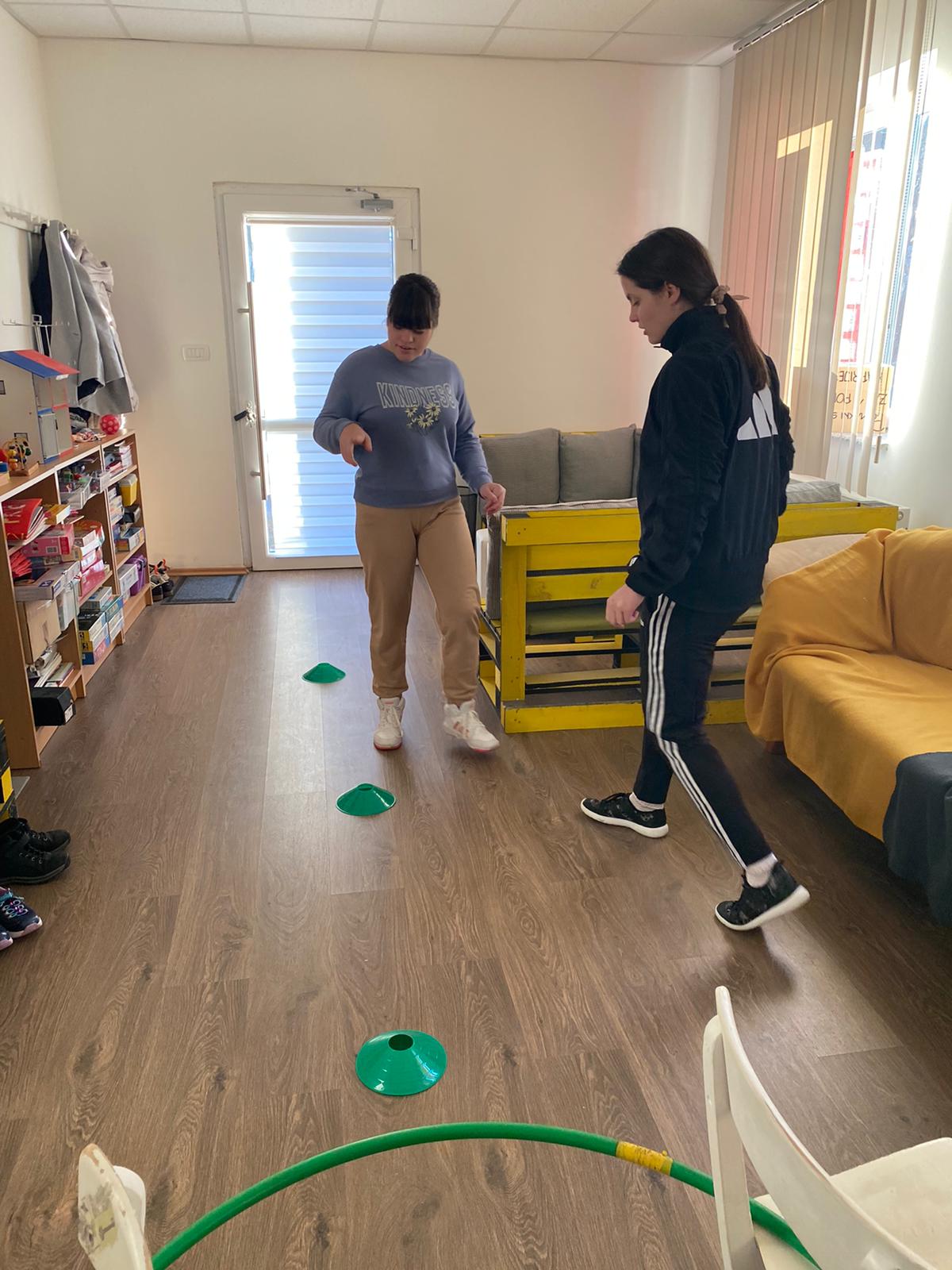 Nina i Ana, fizioterapeutice, u Udruzi „Pčelice“ s korisnicima provode razne sportsko-rekreacijske aktivnosti u kojima korisnici rado sudjeluju. To su najčešće različiti poligoni, senzorne igre i ples.