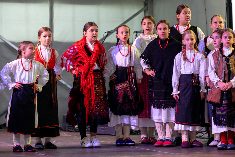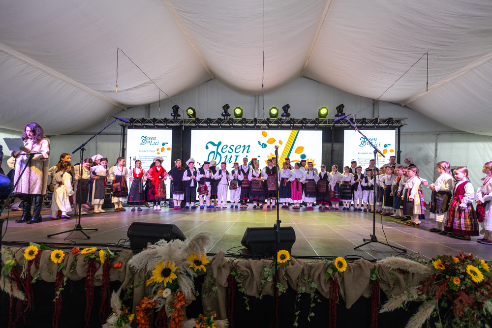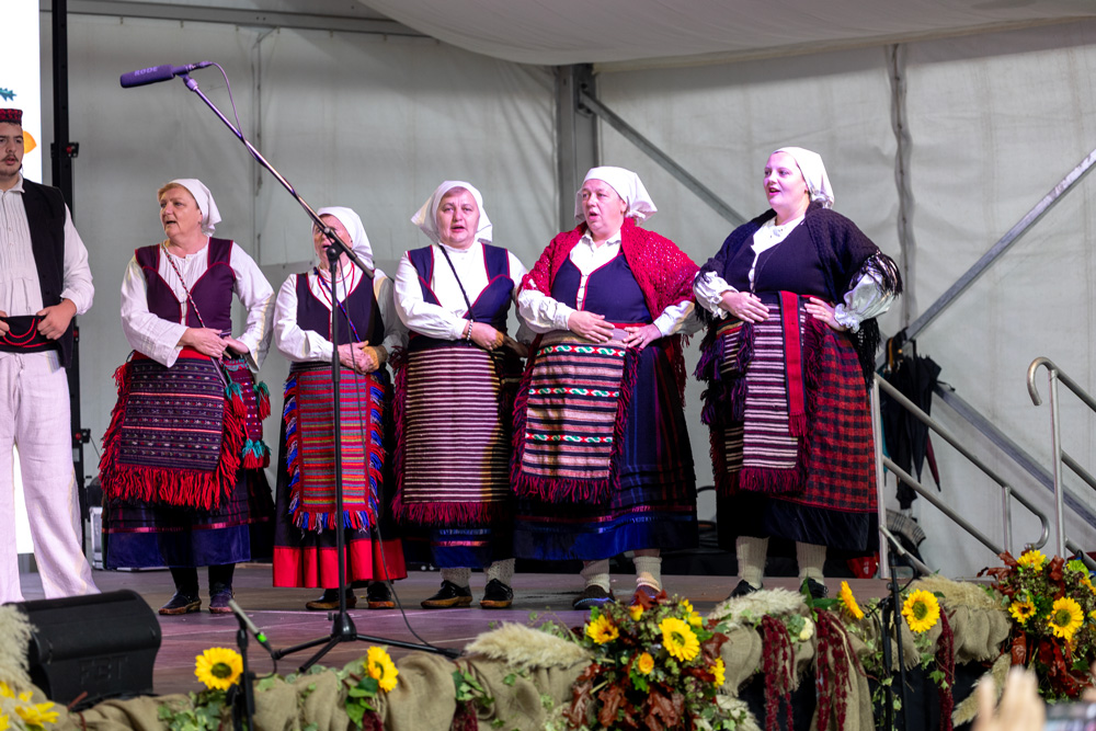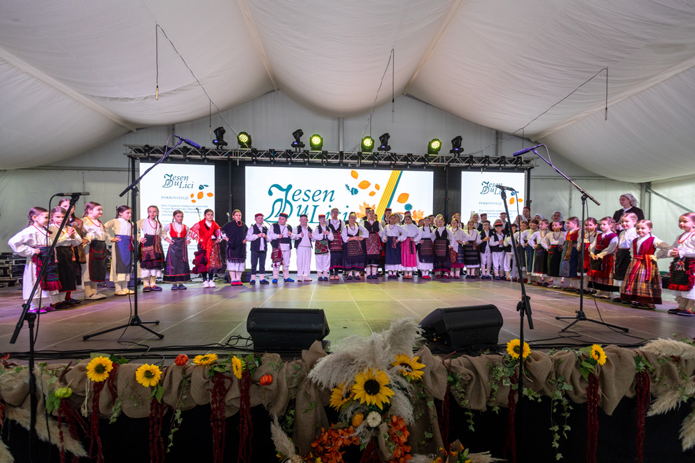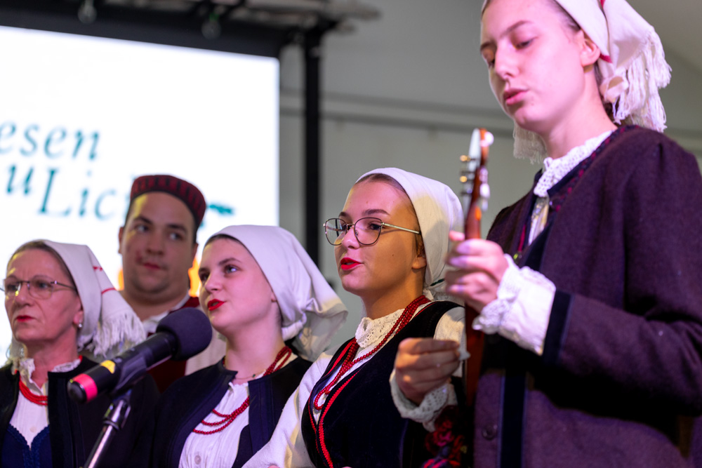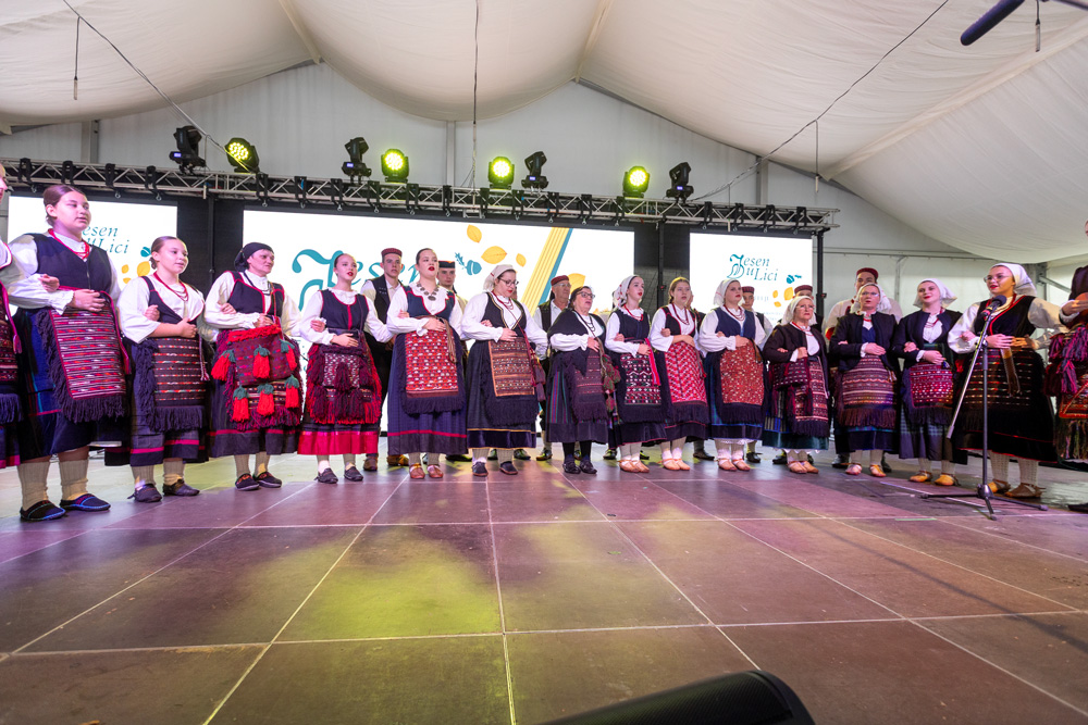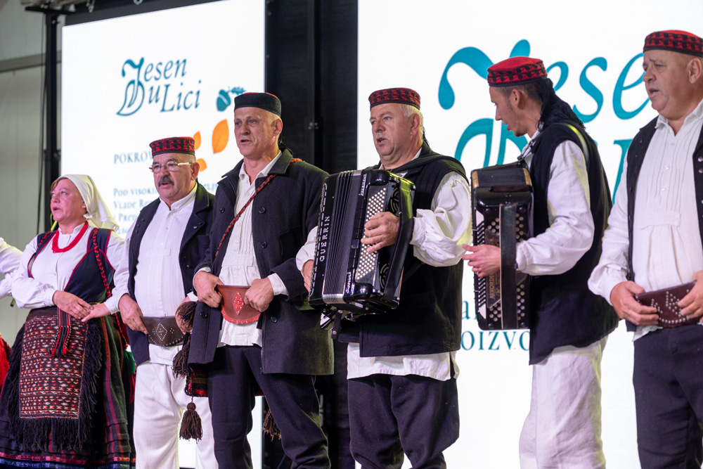 Program se nastavio pod velikim šatorom na trgu Stjepana Radića, gdje su nastupila brojna kulturno-umjetnička društva. Posjetitelji su mogli uživati u pjesmi, plesu i tradicionalnim nošnjama izvođača iz Like i drugih dijelova Hrvatske, među kojima su HKUD „Lika“ Lički Osik, KUD „Graničar“ Cvitović, HKUD „Široka Kula“, KUD „Sv. Nikola Tavelić“ Lišane Ostrovičke, KUD „Sv. Mihovil“ Nikšić, HKUD „Vrilo“ Lovinac i KUD „Bukovačko Smilje“ Bjelina Benkovac.
