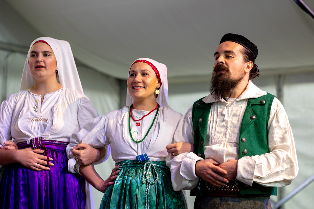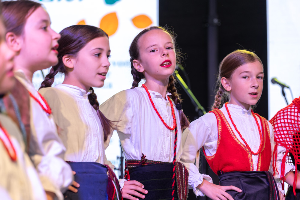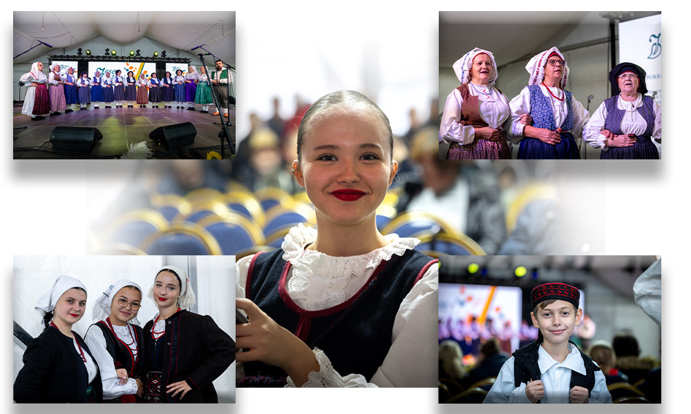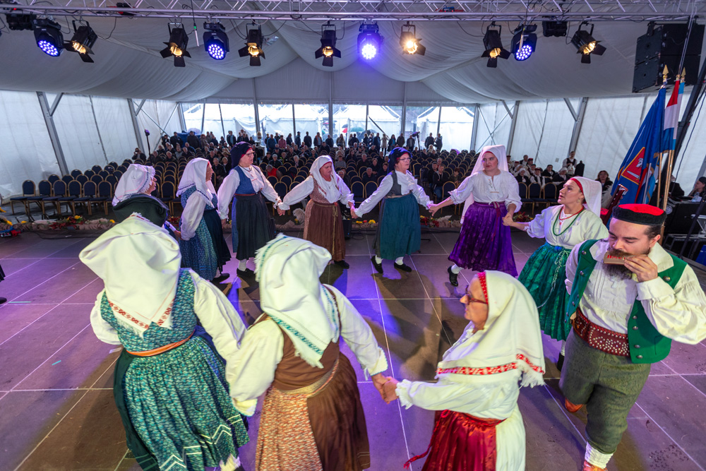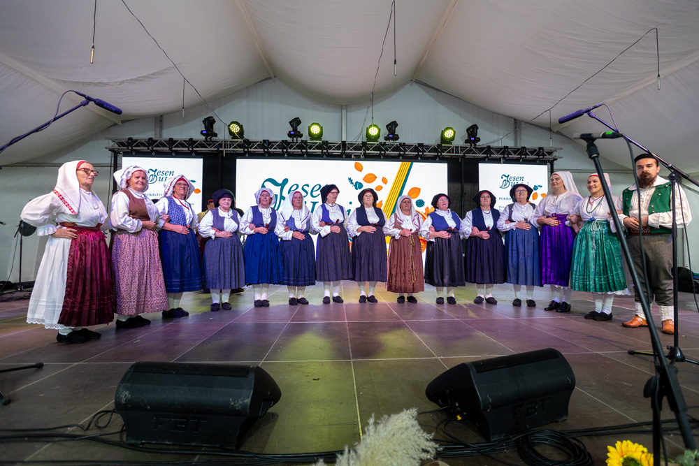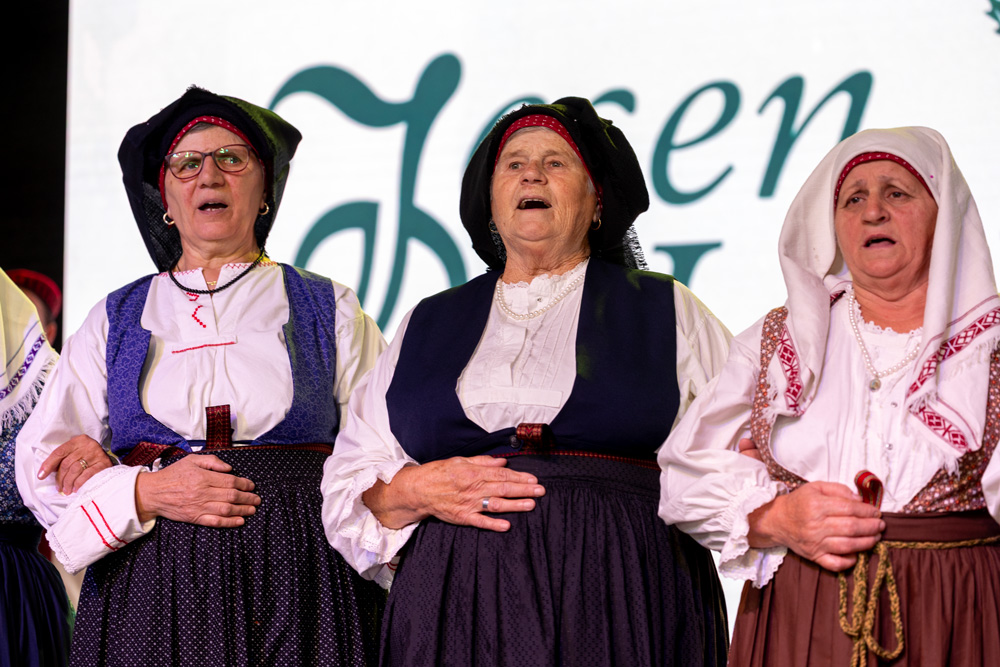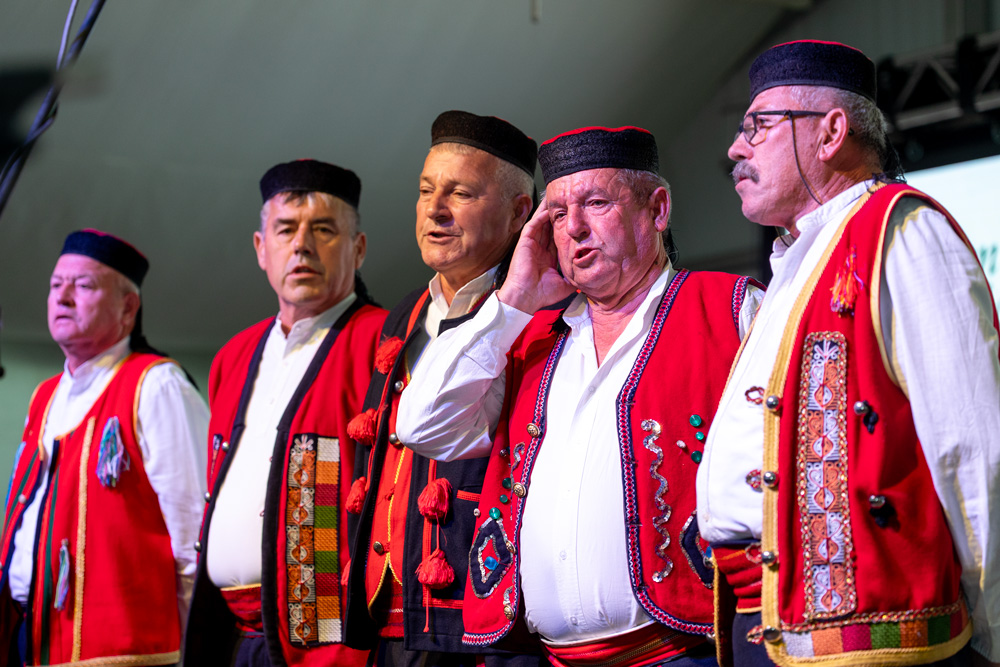 Program se nastavio pod velikim šatorom na trgu Stjepana Radića, gdje su nastupila brojna kulturno-umjetnička društva. Posjetitelji su mogli uživati u pjesmi, plesu i tradicionalnim nošnjama izvođača iz Like i drugih dijelova Hrvatske, među kojima su HKUD „Lika“ Lički Osik, KUD „Graničar“ Cvitović, HKUD „Široka Kula“, KUD „Sv. Nikola Tavelić“ Lišane Ostrovičke, KUD „Sv. Mihovil“ Nikšić, HKUD „Vrilo“ Lovinac i KUD „Bukovačko Smilje“ Bjelina Benkovac.