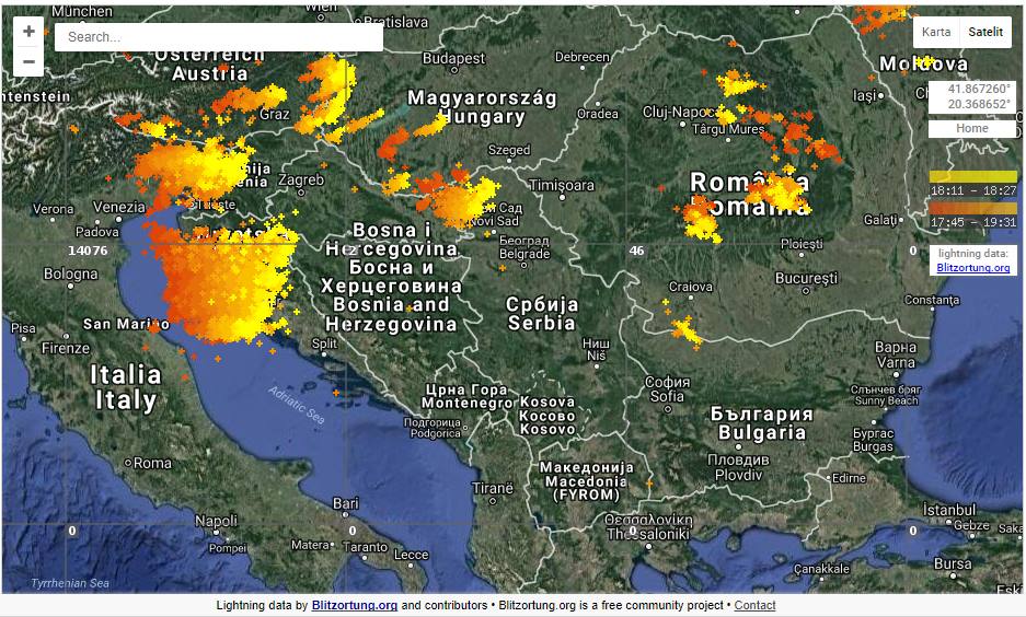 Kako kažu na TOP SHOP-u “i to nije sve”! Slika na lightningmaps.org pokazuje jaku grmljavinu koja je na putu prema našem području i tako bi nam priroda mogla još pokazati pravi “light show” tijekom noći.