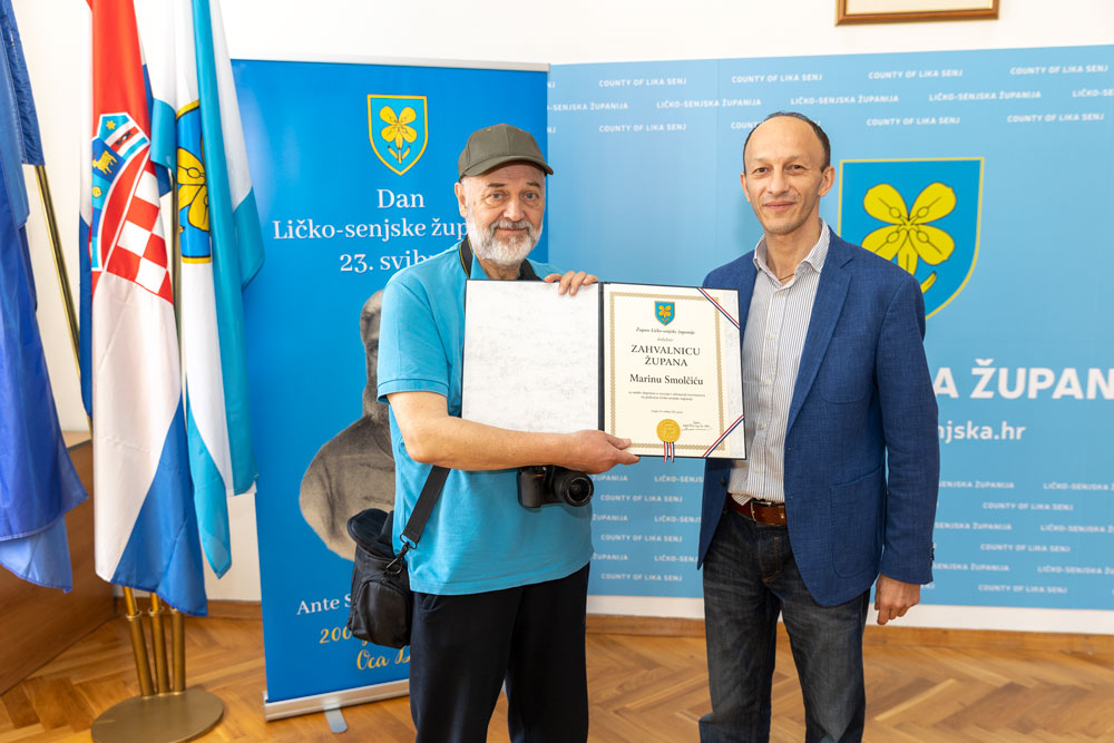 U znak priznanja za osobit doprinos u razvoju i afirmaciji novinarstva na području Ličko-senjske županije, naš kolega novinar Marin Smolčić, primio je zahvalnicu župana Ernesta Petryja. Zahvalnica koja mu zbog tehničkih razloga nije bila dodijeljena na obilježavanju Dana Ličko-senjske županije uručena mu je danas.
